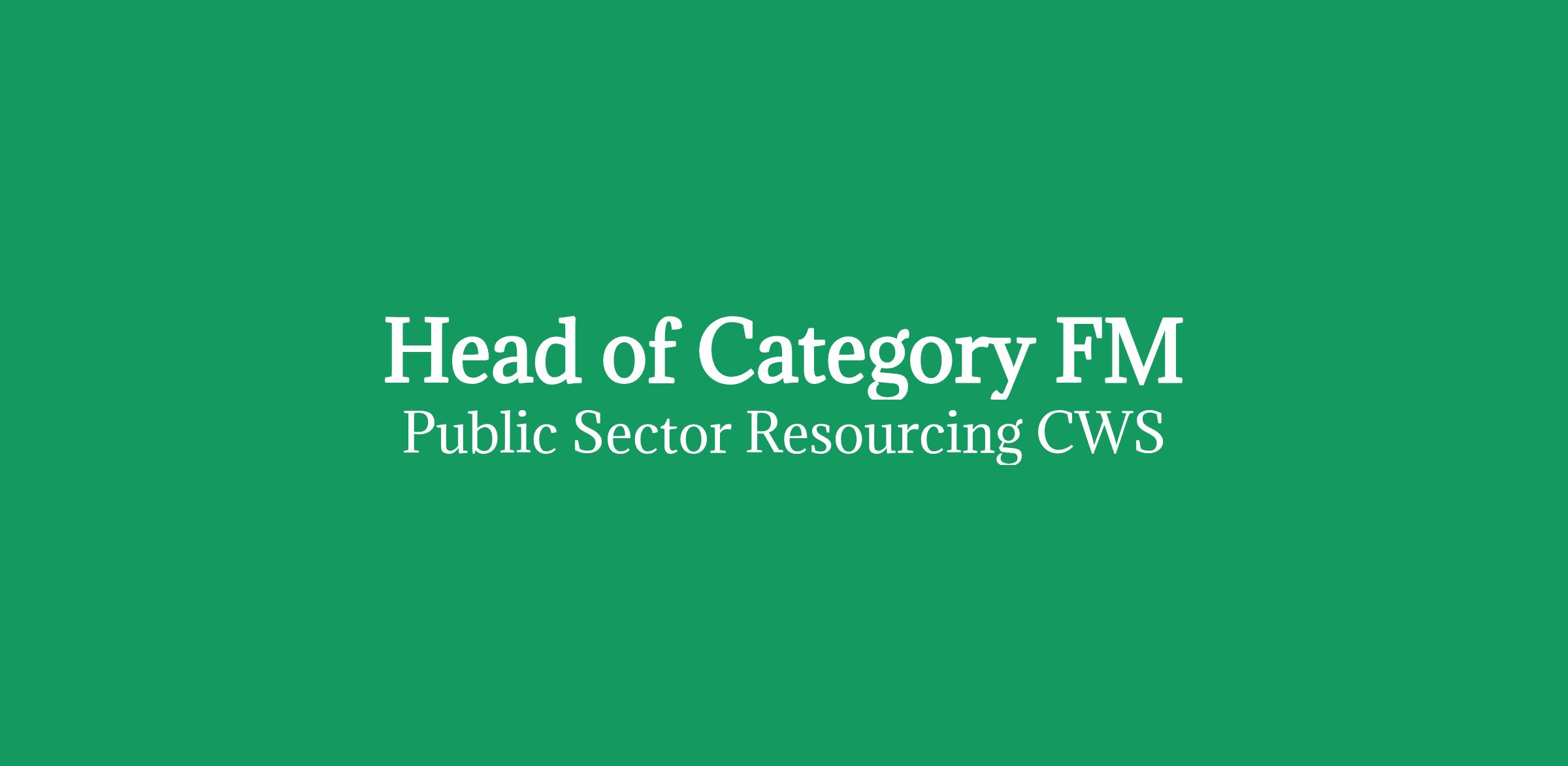 On behalf of the MOD, we are looking for a Head of Category FM (Inside IR35) for a 6 months contract based 1-2 days per week in Andover, Glasgow, Wyton or Whittington occasional travel to other sites.