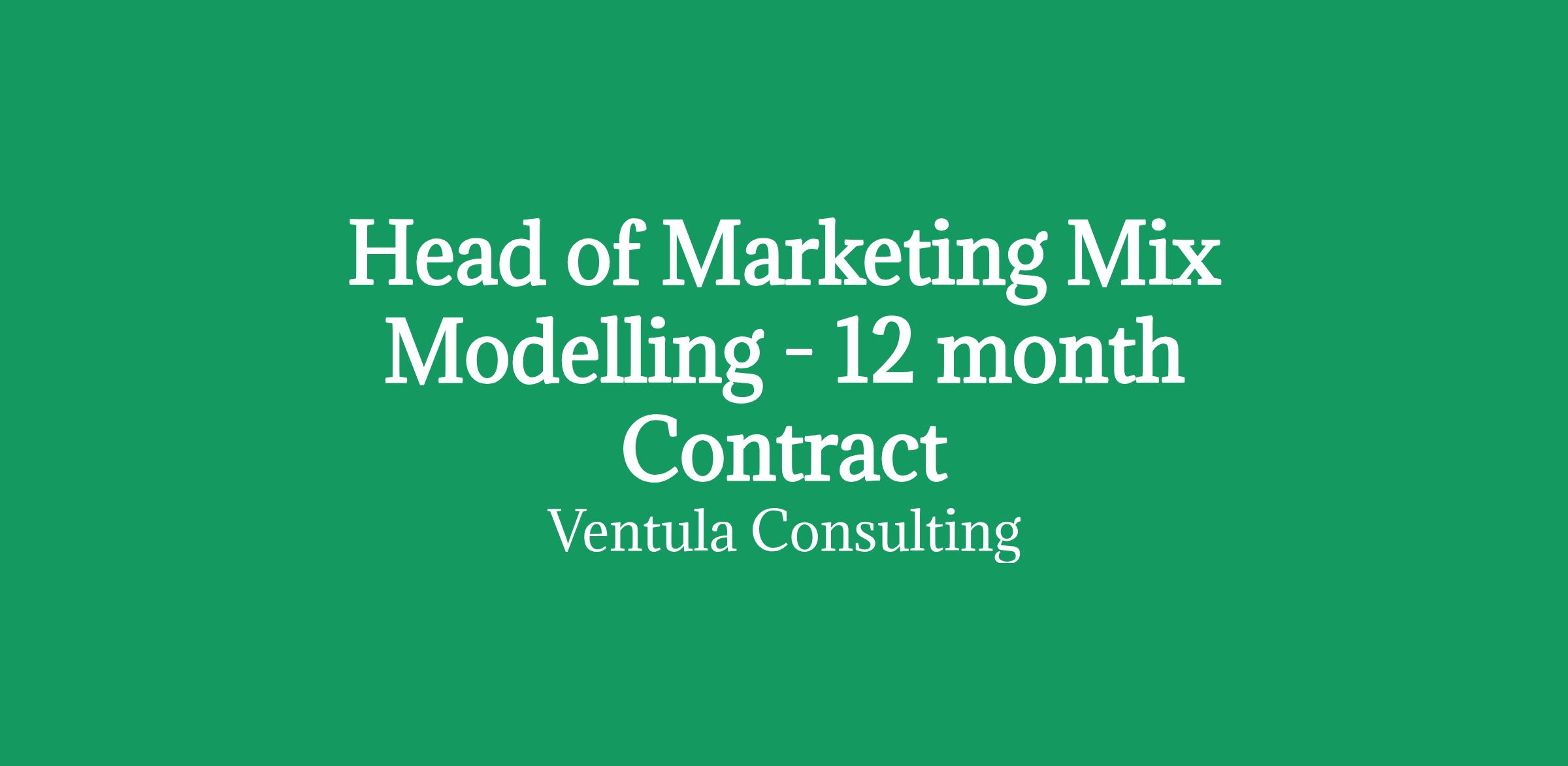Head of Marketing Mix Modelling - 12 month Contract