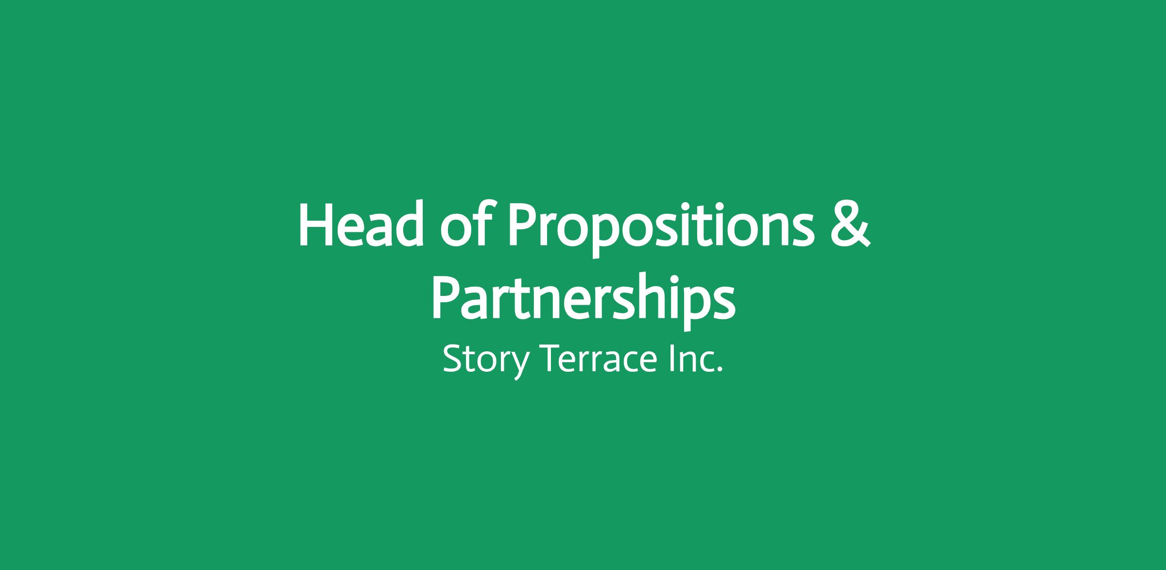 Key Responsibilities As Head of Propositions & Partnerships, you will: