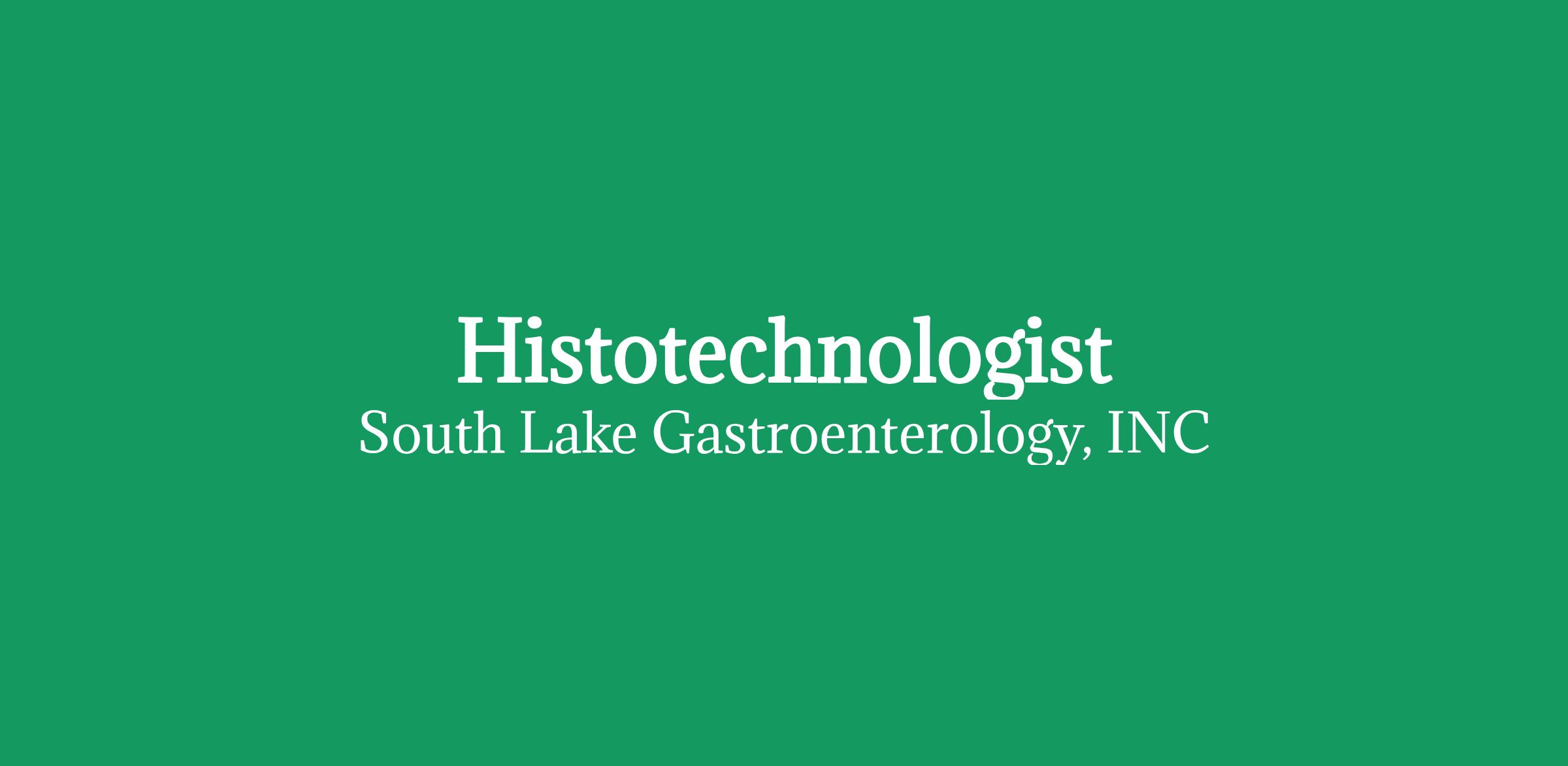 As a Histotechnologist at South Lake Gastroenterology, you will play a vital role in preparing tissue samples . Currently, we process 70-100 specimens per day at our lab. You role will include various laboratory responsibilities including embedding, sectioning and staining tissues.