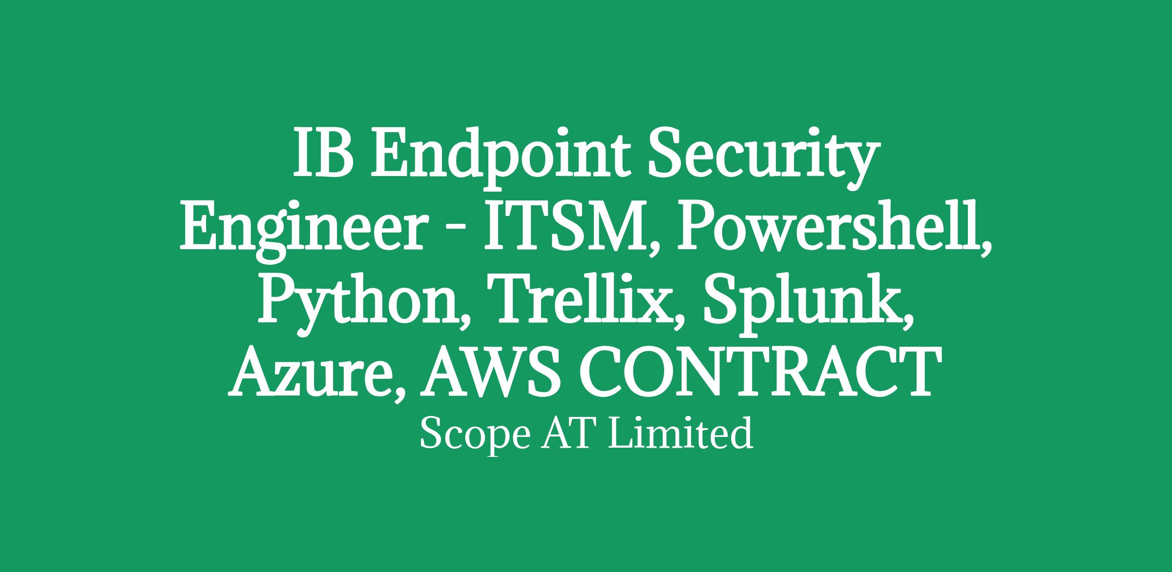 Investment Banking Endpoint Security Engineer - ITSM, Powershell, Python, Trellix, Splunk, Azure, AWS CONTRACT