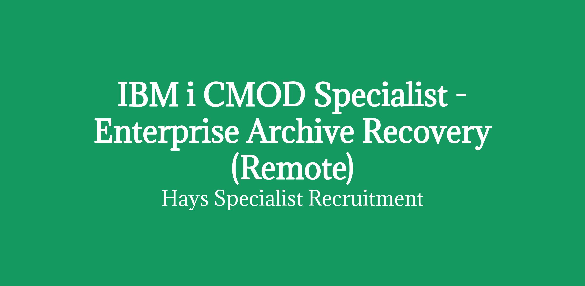 IBM i CMOD Specialist - Enterprise Archive Recovery (Remote Contract)Banking End Client | Enterprise Archive Recovery
