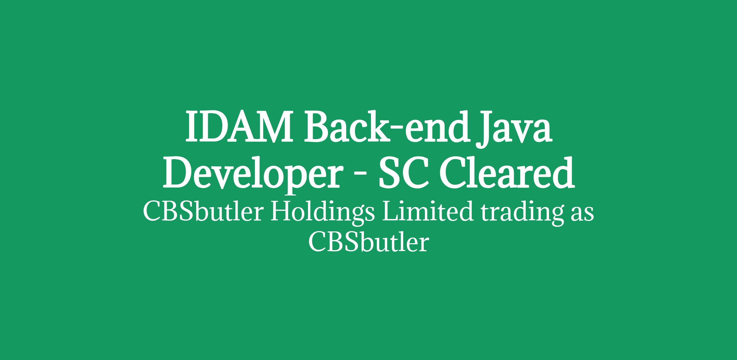 IDAM Back-end Java Developer - SC Cleared
