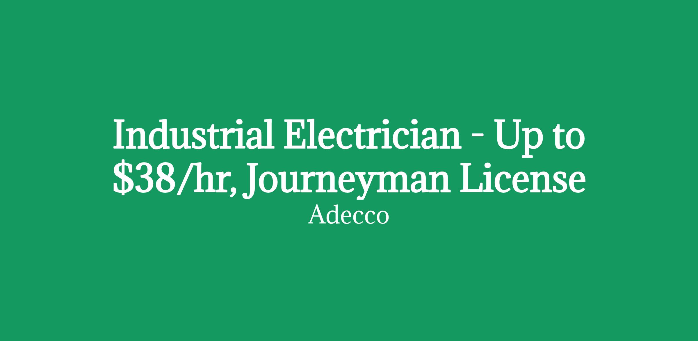 Industrial Electrician - Up to $38/hr, Journeyman License