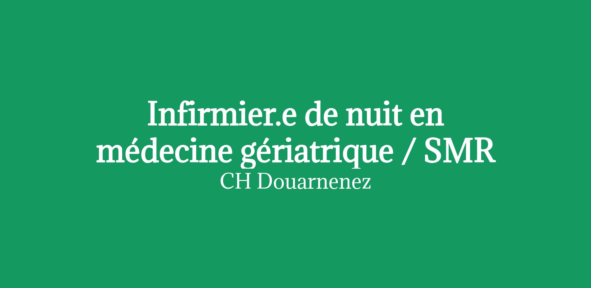 Le Centre Hospitalier de Douarnenez recherche un.e infirmier.e de nuit dans le service de Médecine Gériatrique/SMR (F/H) pour un remplacement de congé maternité.