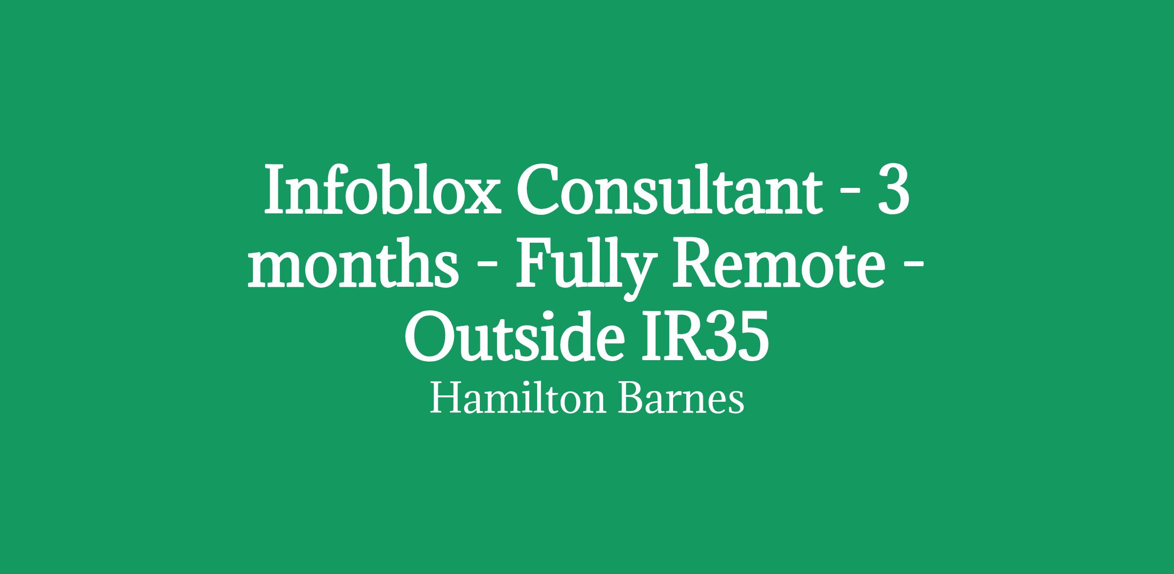 Infoblox Consultant - 3 months - Fully Remote - Outside IR35