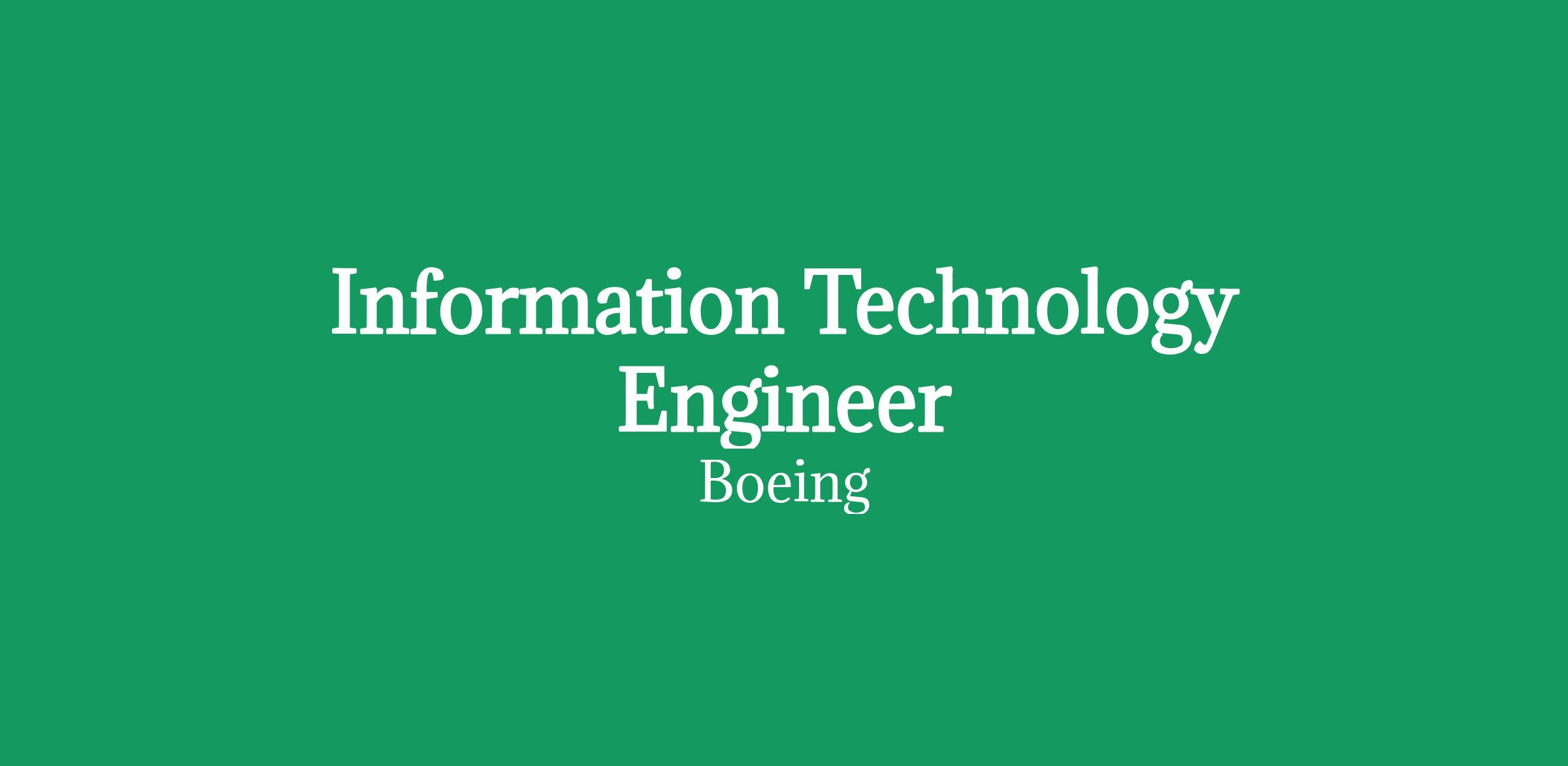 The Boeing Defense, Space & Security (BDS) organization is seeking an Information Technology Engineer to support engineering databases and applications related to safety, design, configuration management, and change management. This is a BDS position located in Tukwila, Washington, and reports to the P-8 Data Management Team. This position will be 100% onsite in Tukwila, WA.