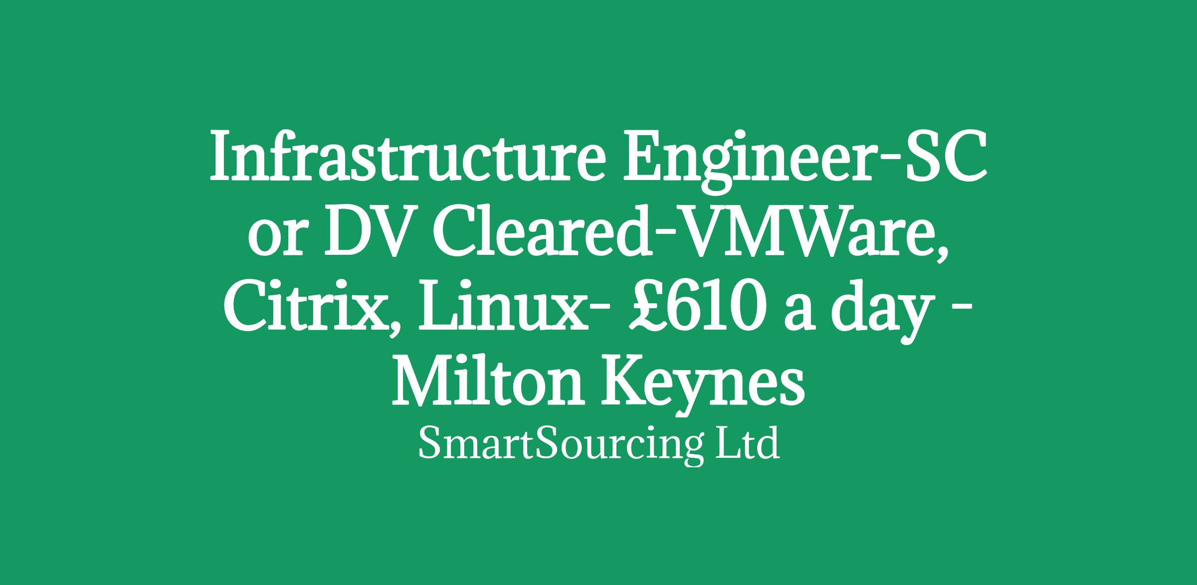 Infrastructure Engineer-SC or DV Cleared-VMWare, Citrix, Linux- £610 a day -Milton Keynes