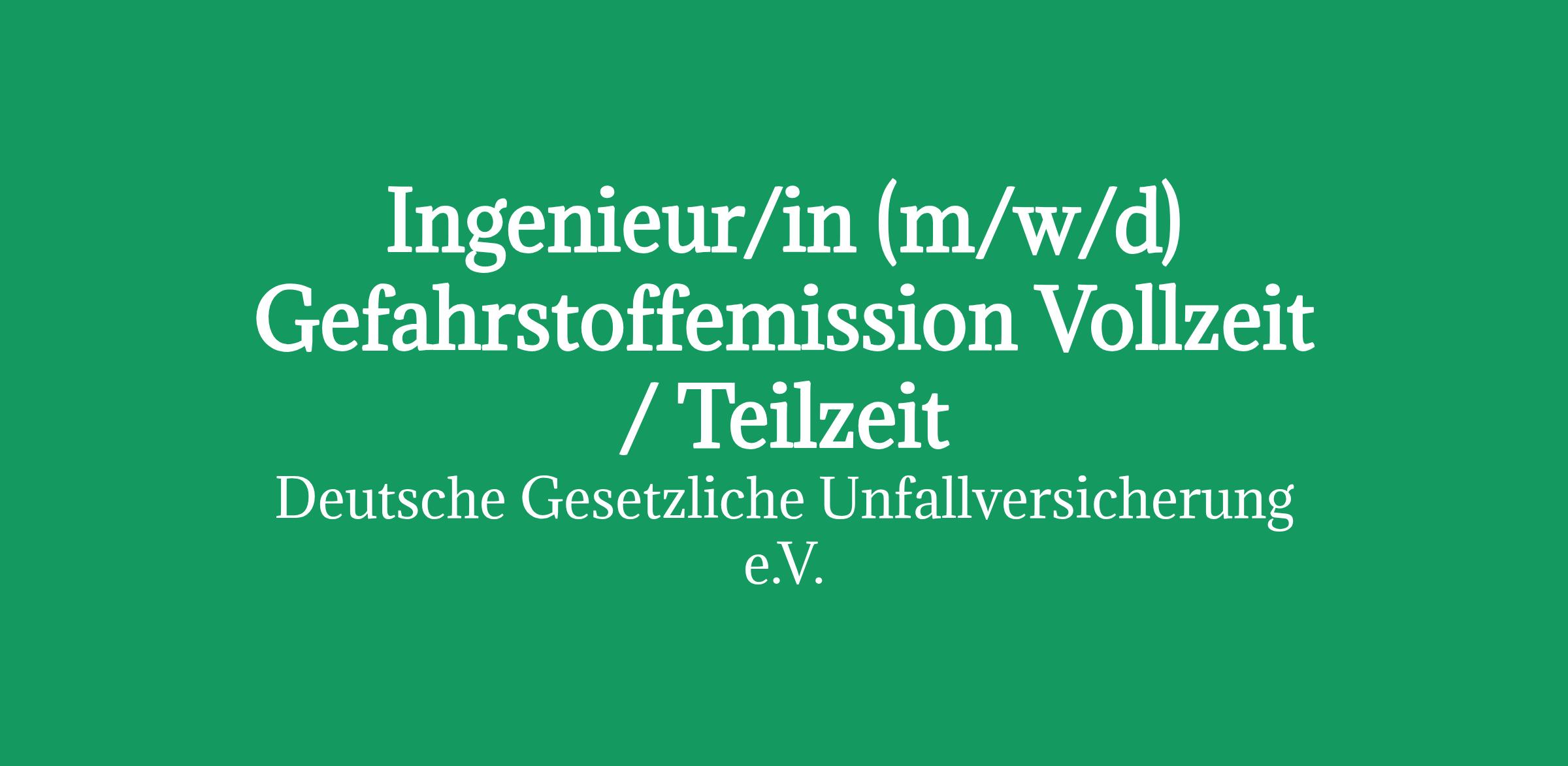 Ingenieur/in (m/w/d) Gefahrstoffemission Wir sind die Deutsche Gesetzliche Unfallversicherung e.V. (DGUV),