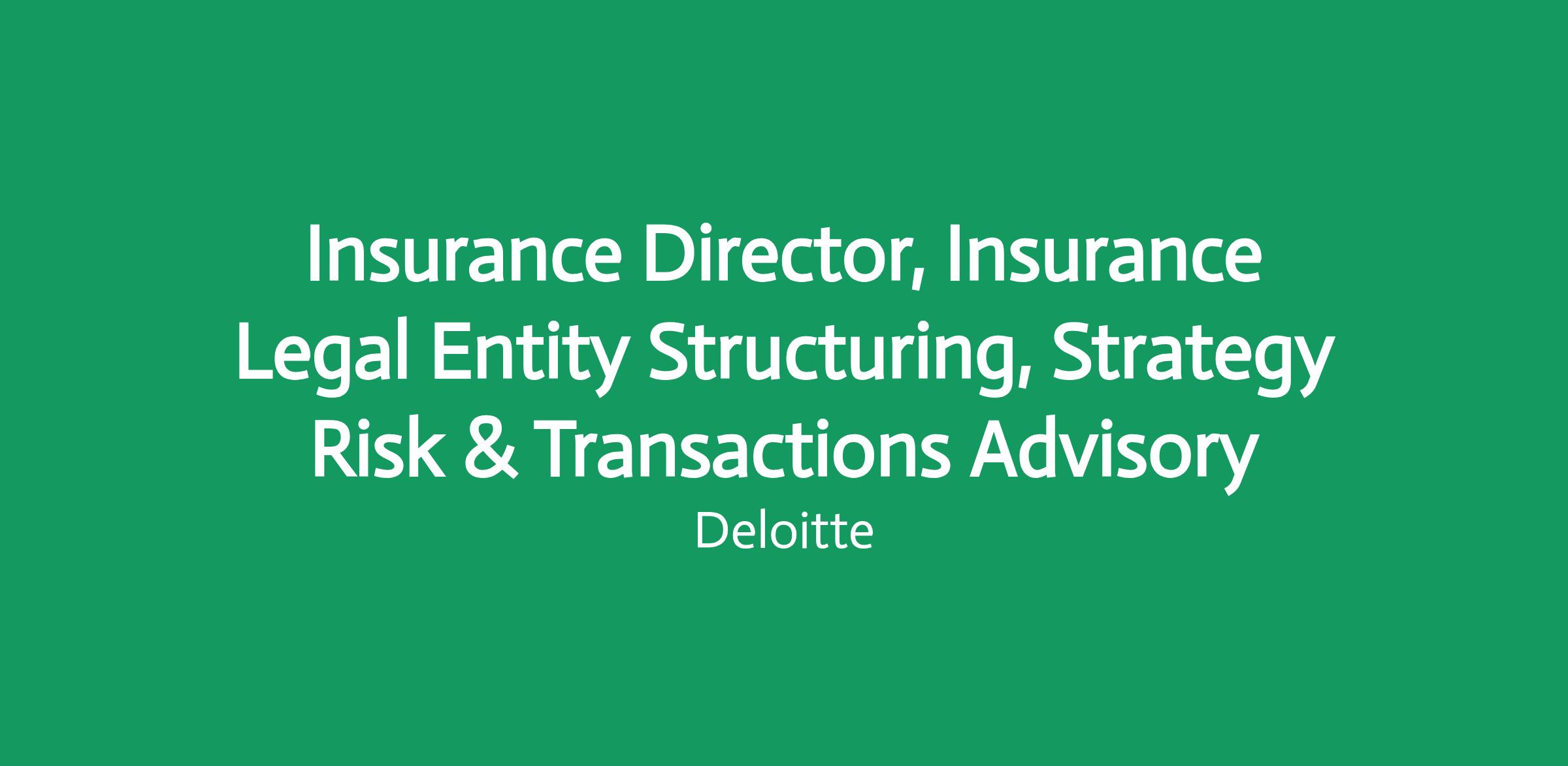 Insurance Director, Insurance Legal Entity Structuring, Strategy Risk & Transactions Advisory