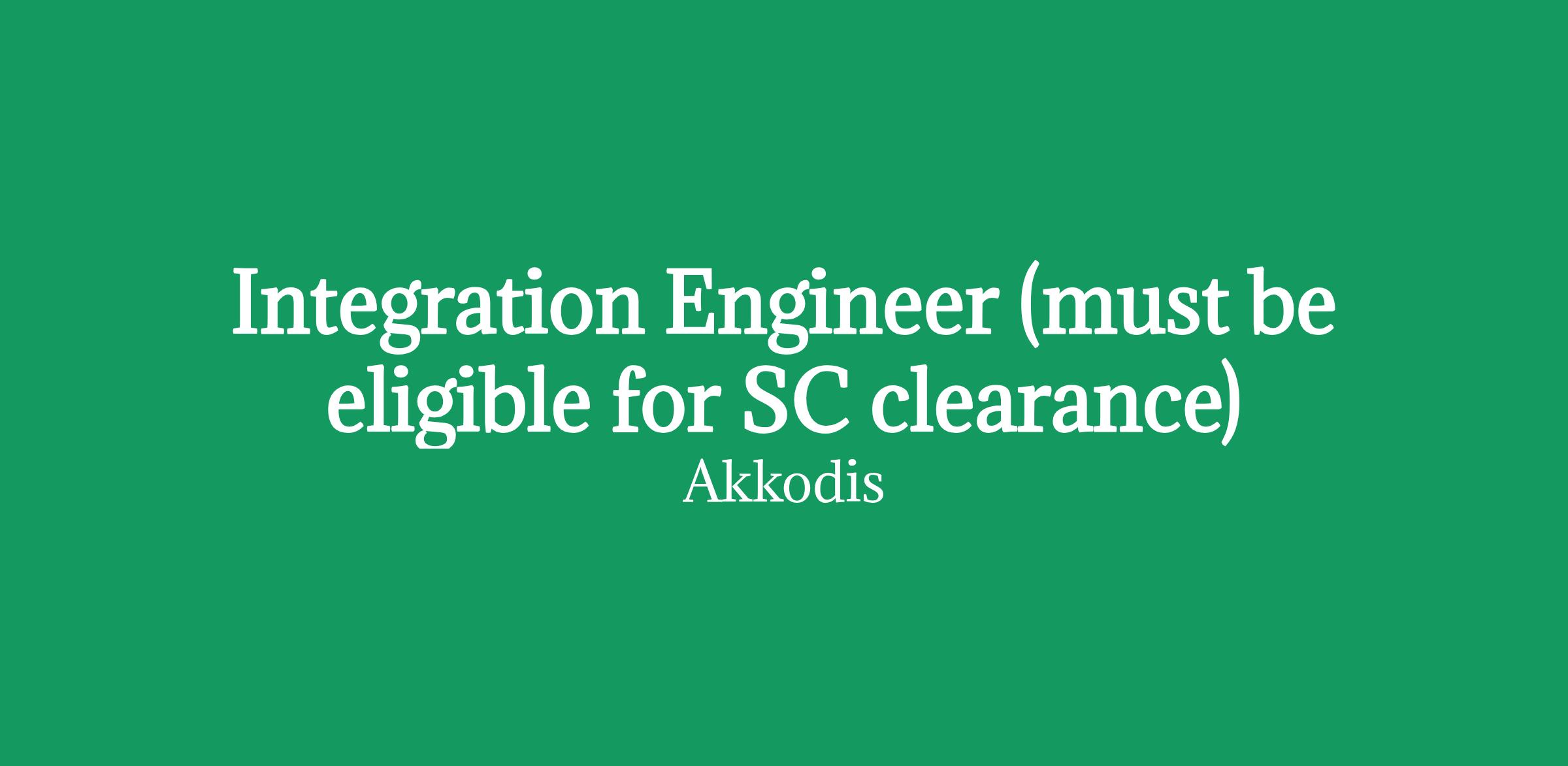 Integration Engineer (must be eligible for SC clearance)