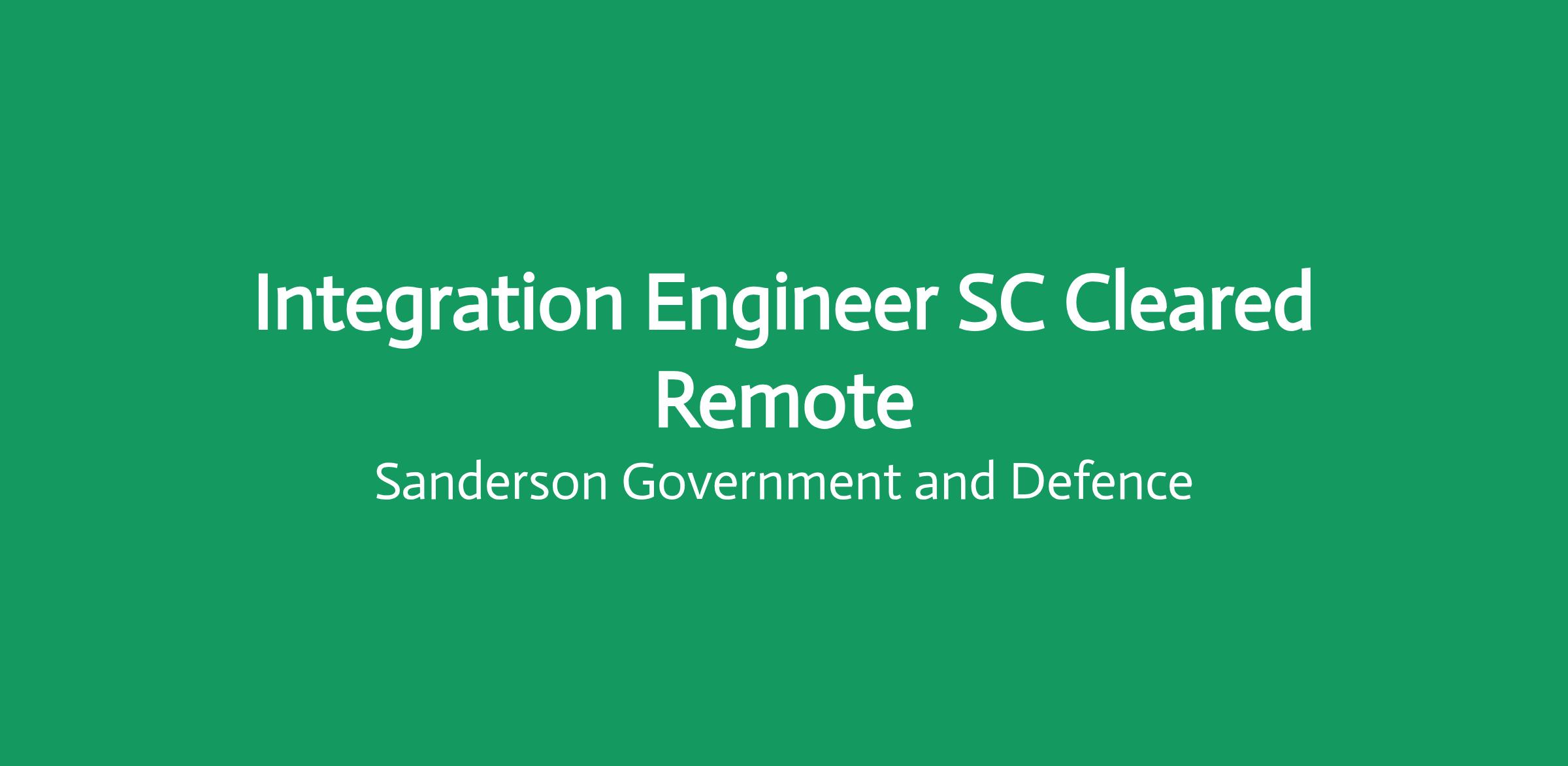 Integration Engineer SC Cleared Remote