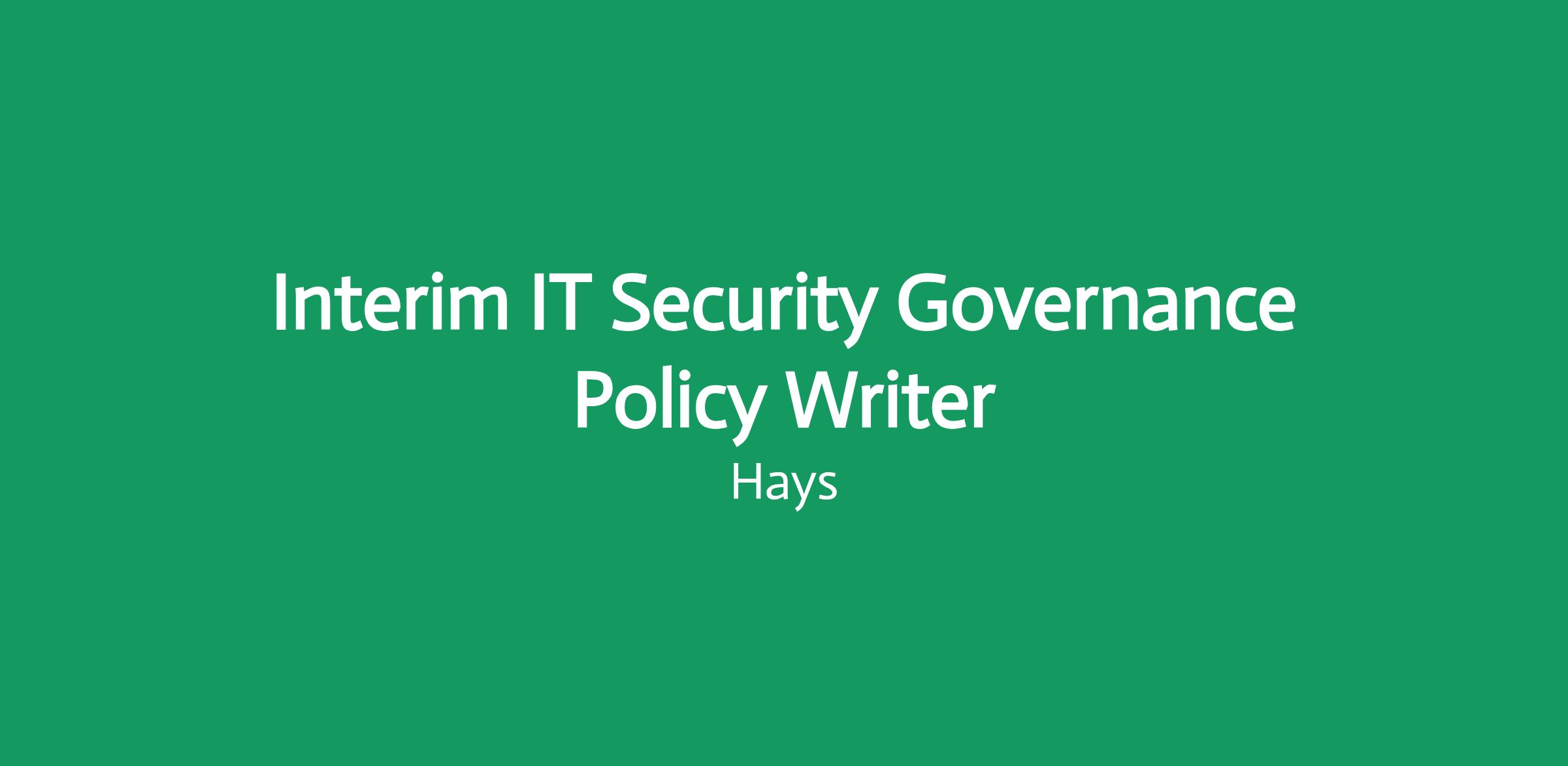 Your new company A well-known technology organisation offers almost fully remote working to an Interim IT Security Policy Writer for 3-6 months- flexible locations, but occasional meetings will be required in Reading or London.