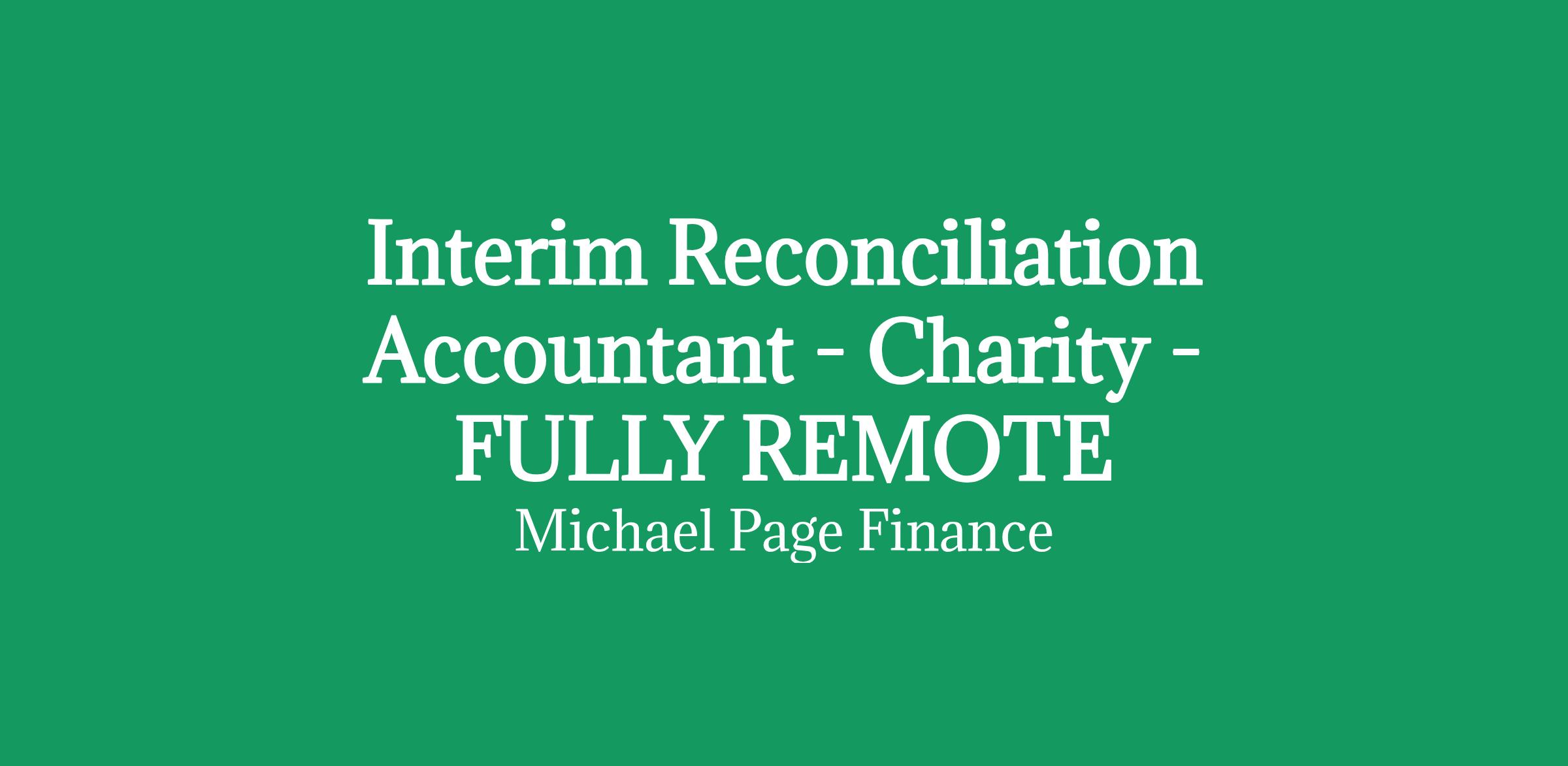 Interim Reconciliation Accountant - London based charity - 2/3 month contract -Fully remote - Day rate