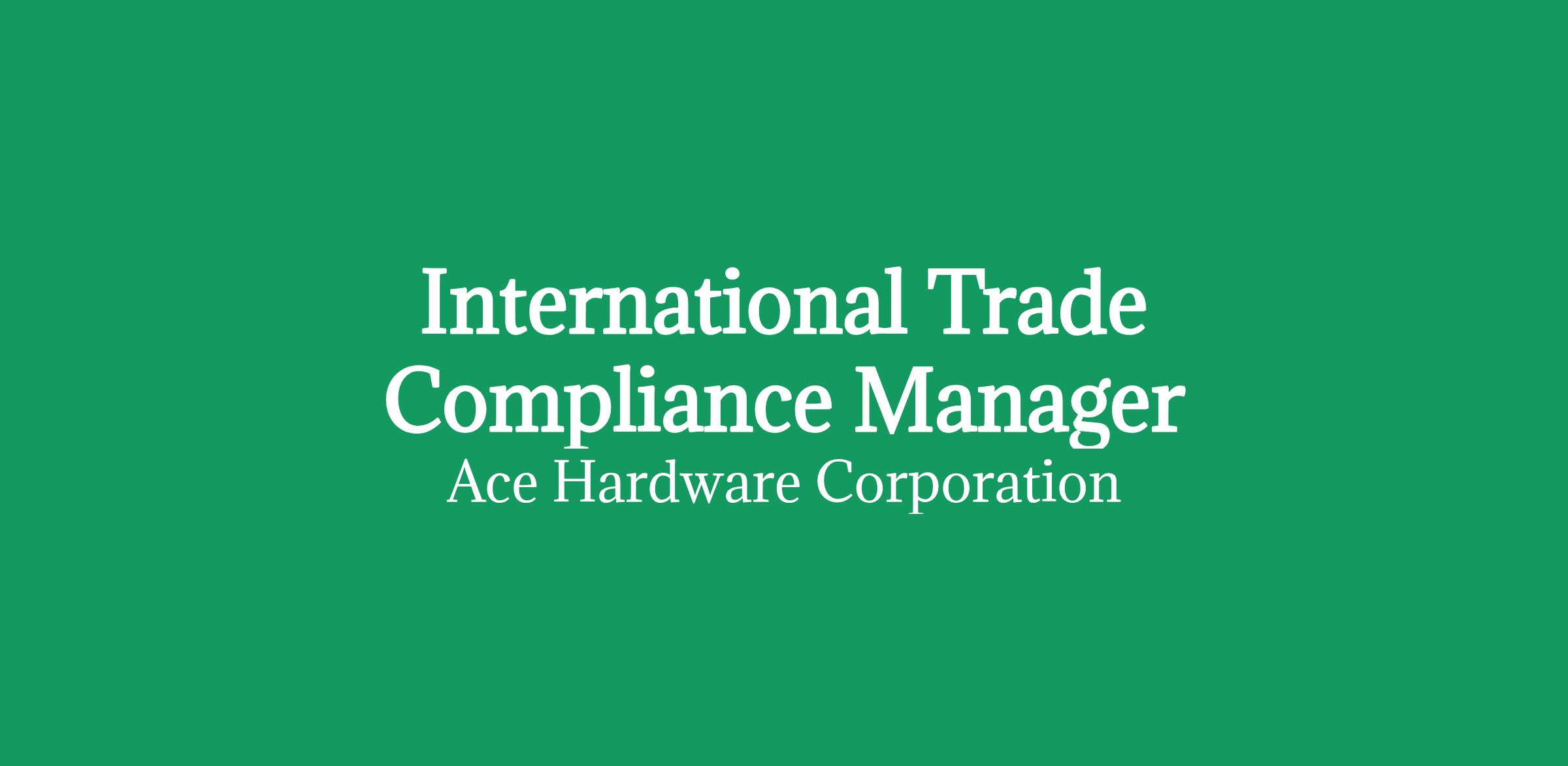 - Work closely with Director of International Logistics and Compliance to ensure all matters related to trade compliance as communicated and addressed cross functionally throughout Ace Hardware.