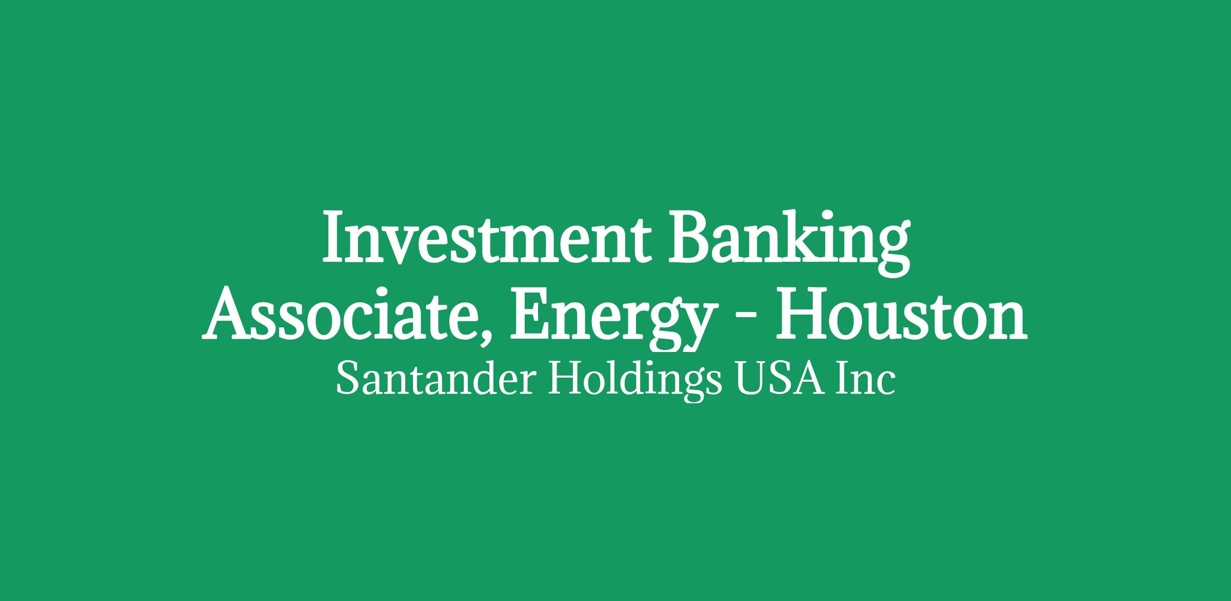This role offers immediate responsibility and the opportunity to operate within a collaborative, high-impact environment where initiative is valued and performance is highly visible. As part of a leading global bank with a rapidly expanding U.S. investment banking platform-particularly in Houston-you will benefit from Santander's scale and balance sheet alongside the momentum of a team in build mode. Associates will gain significant client exposure, lead key workstreams, and play an active role in developing both junior talent and the broader platform as it continues to grow.