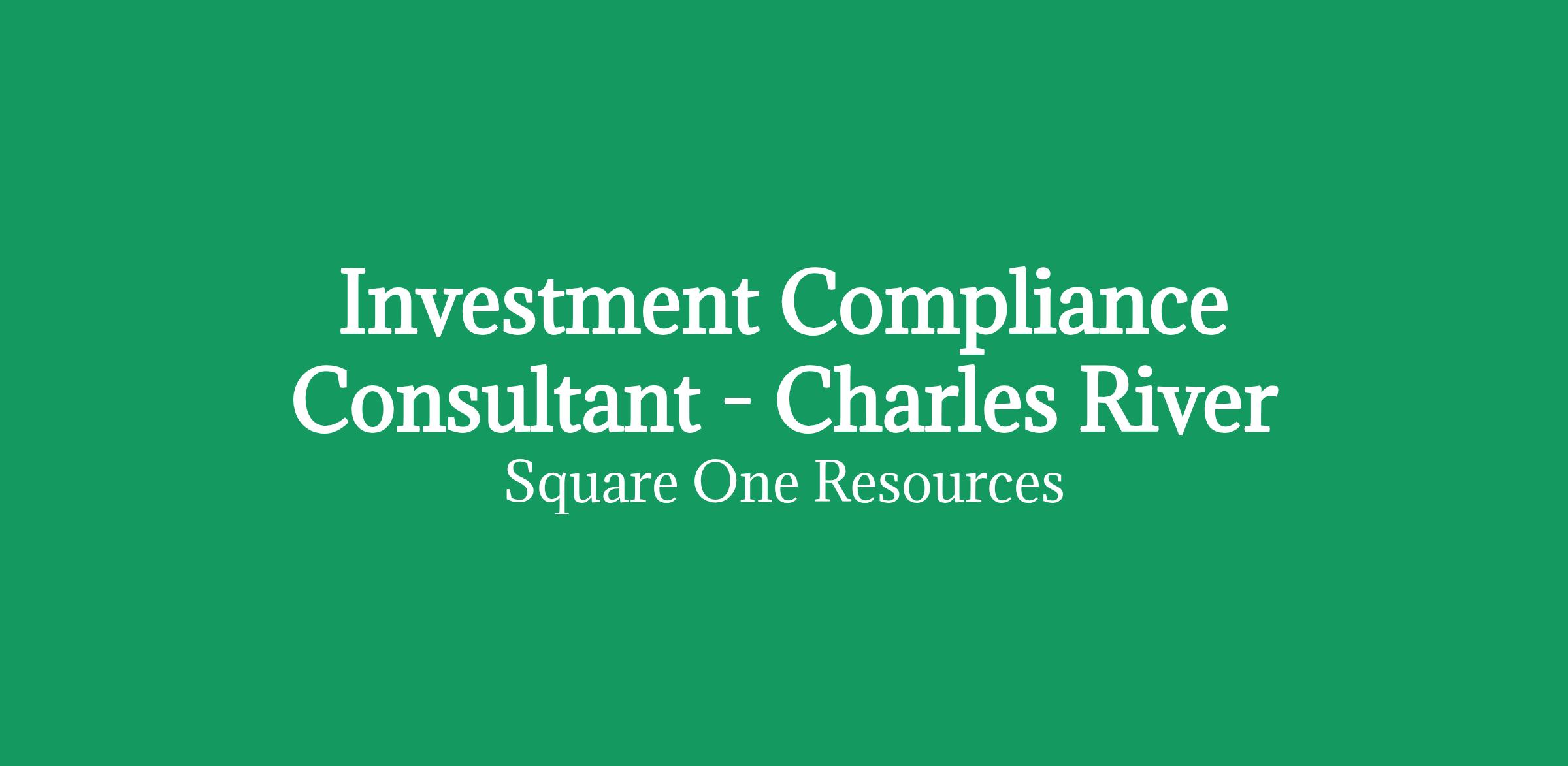 Job Title:Investment Compliance Consultant - Charles River