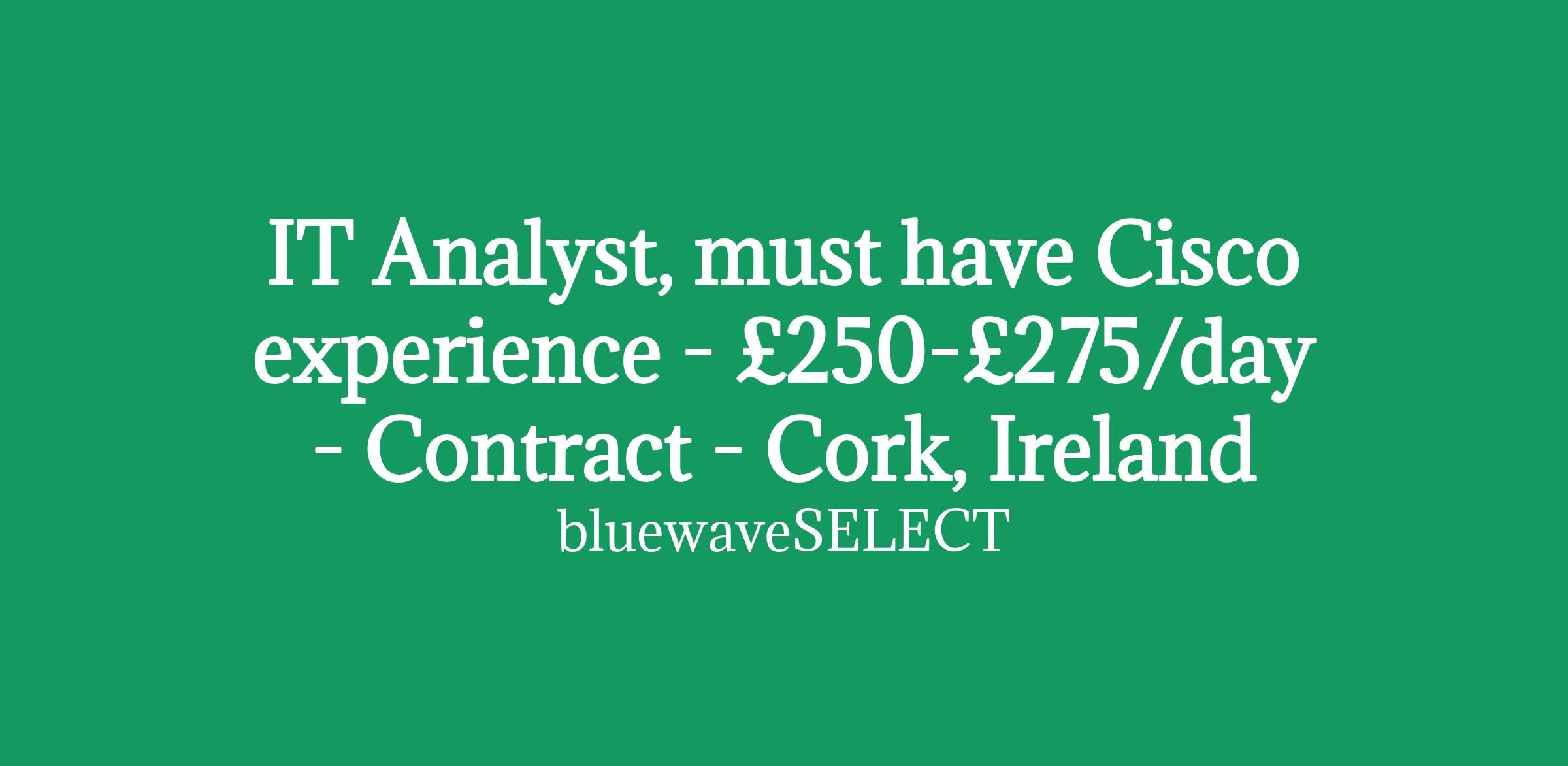 Cisco Network Engineer - £250-£275/day - Contract - Cork, Ireland
