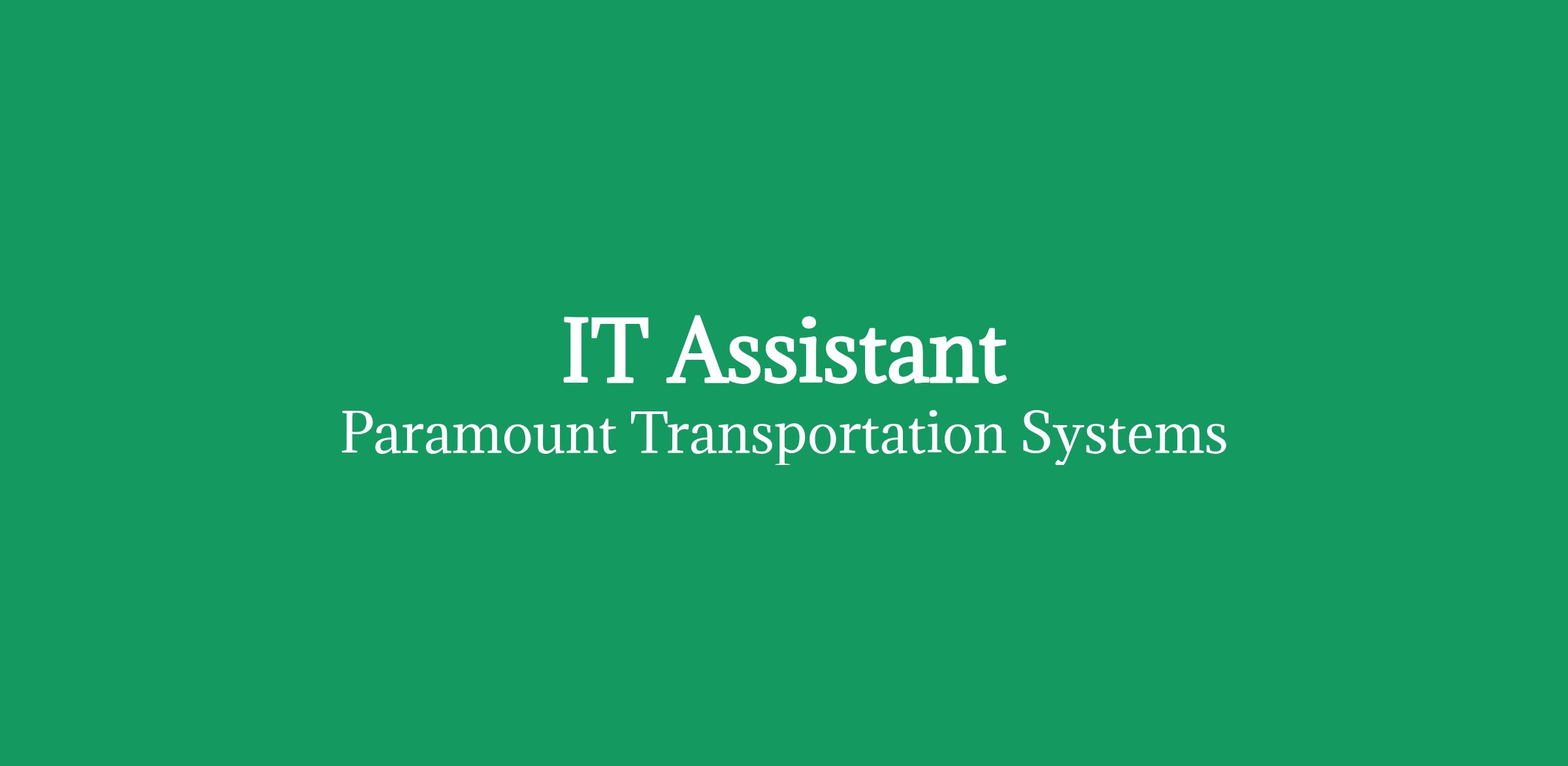 Paramount Transportation Systems, Inc. in San Marcos, CA is currently recruiting a local, full-time, entry-level, Information Technology Assistant. This position is an IT / IS / Programming or IT Customer Service / Help Desk position and is an excellent opportunity for someone who wants to start a career in the IT industry.