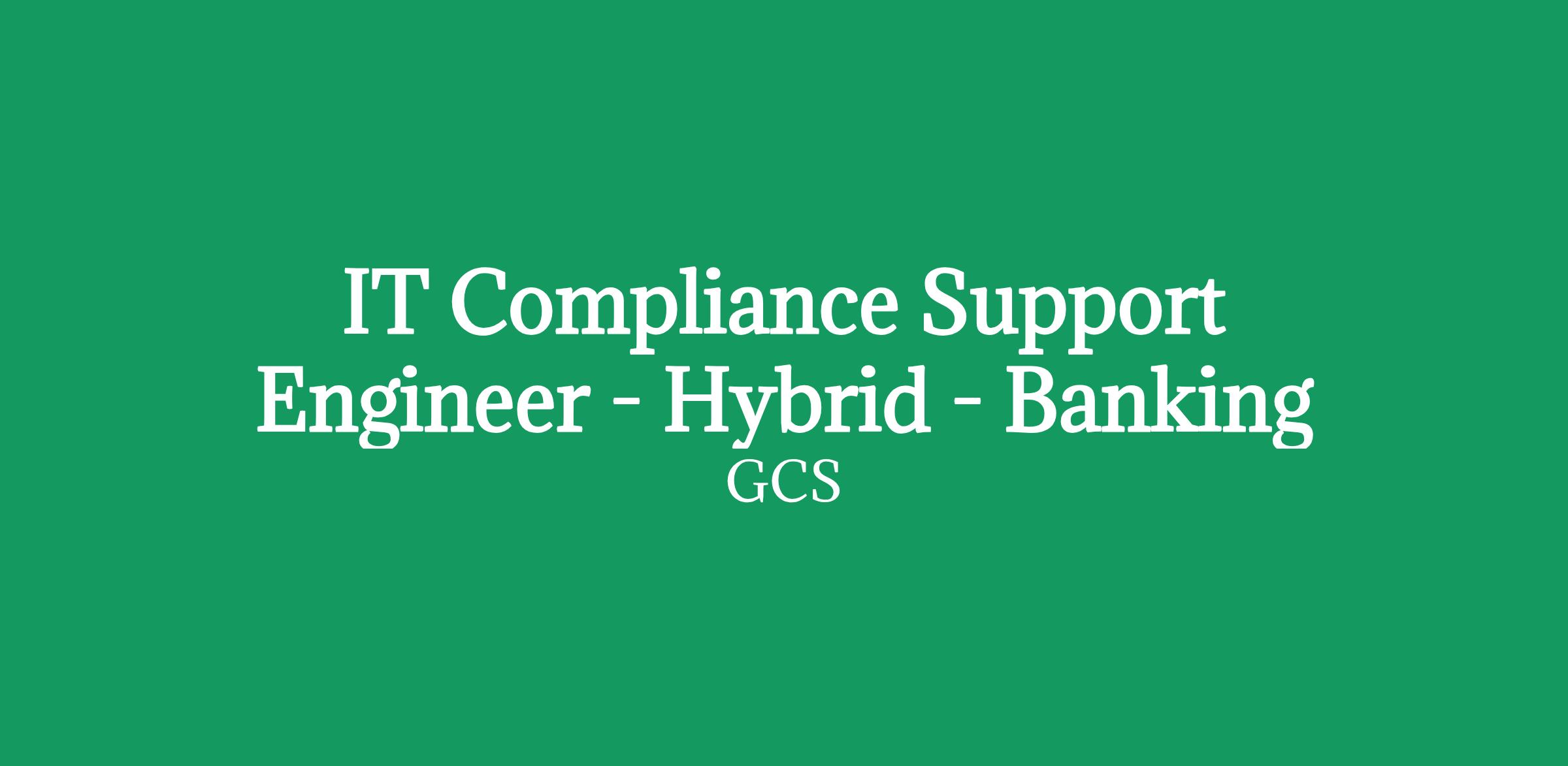 IT Compliance Support Engineer - Hybrid - Banking
