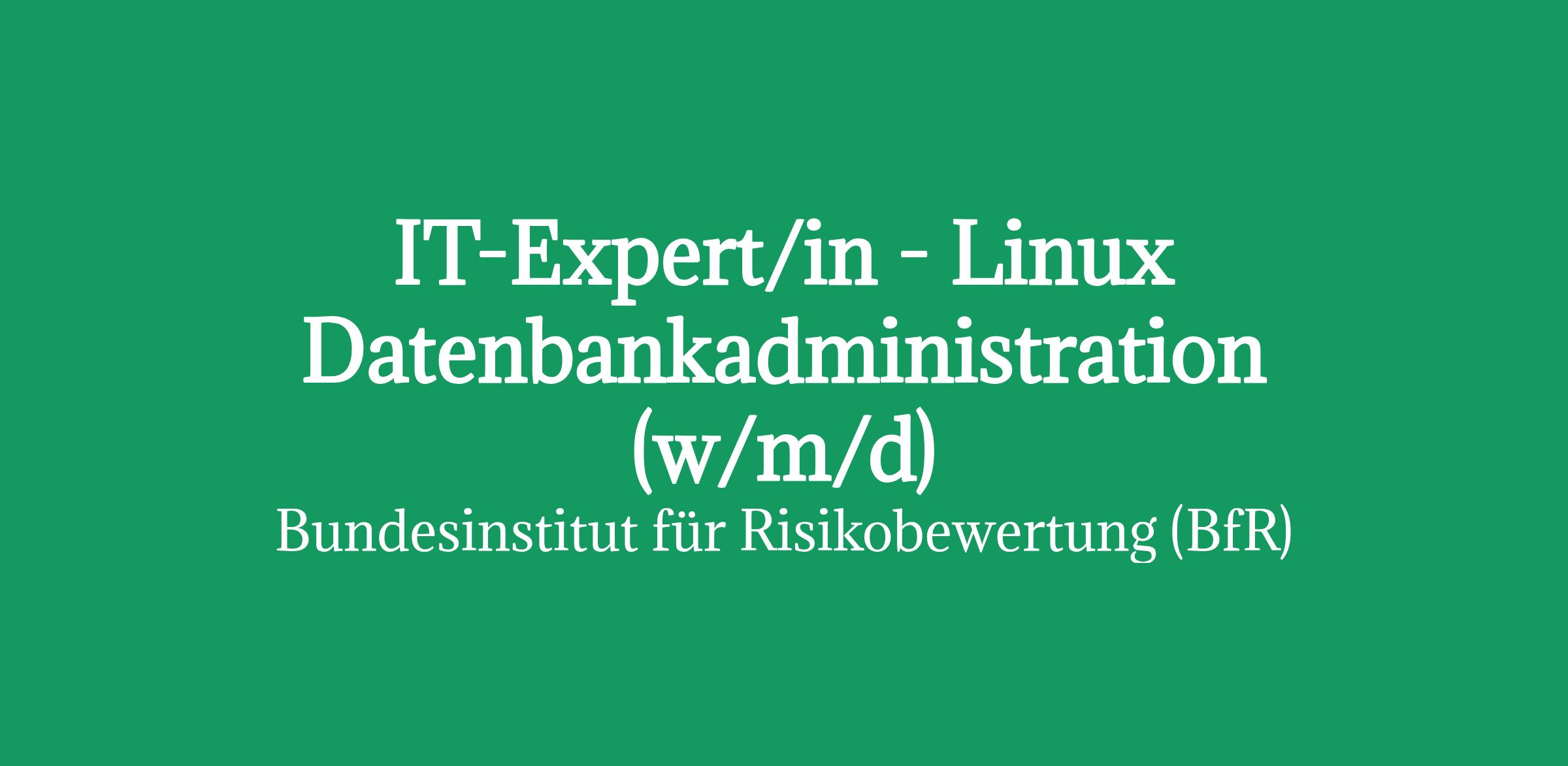 IT-Expert/in - Linux Datenbankadministration (w/m/d) Kennziffer: 3766 Entgeltgruppe: 11 TVöD Dienstort: Berlin unbefristetBei entsprechender Bewährung ist auf dieser Position eine Entwicklung bis Entgeltgruppe 12 TVöD möglich. Die Vergütung erfolgt ausbildungs- und qualifikationsangemessen.