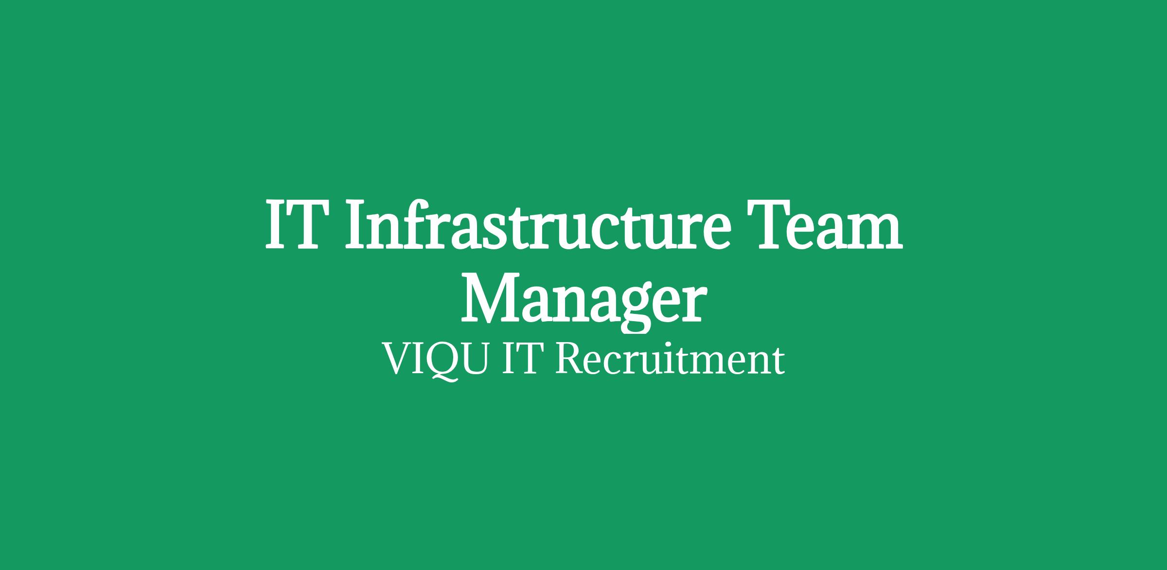 The IT Infrastructure Team Manager will manage a team which covers Server, Compute and Network estate click apply for full job details