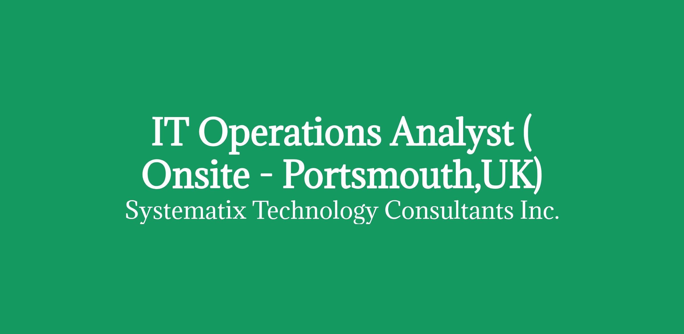 We are Systematix and we are currently looking for an IT Operations Analyst for our life sciences client. This job is Inside IR35 only and 100% onsite.