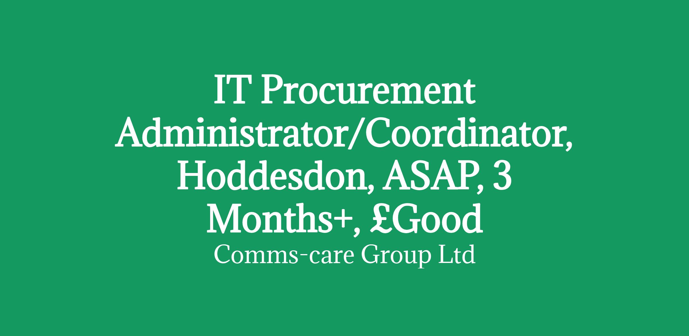 IT Procurement Administrator/Coordinator, Hoddesdon, ASAP, 3 months+, £Good