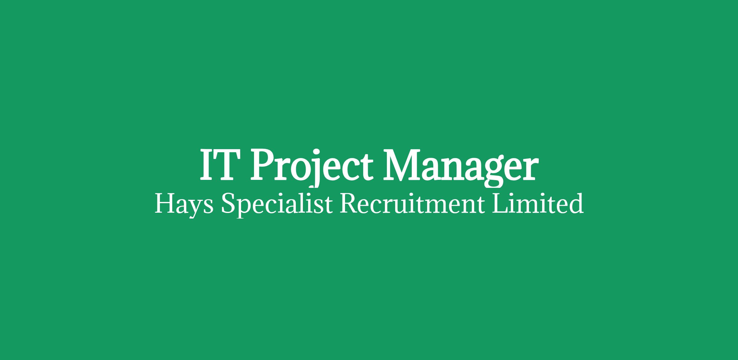 Hays are now looking for an ITProject Manager for one or our local clients.