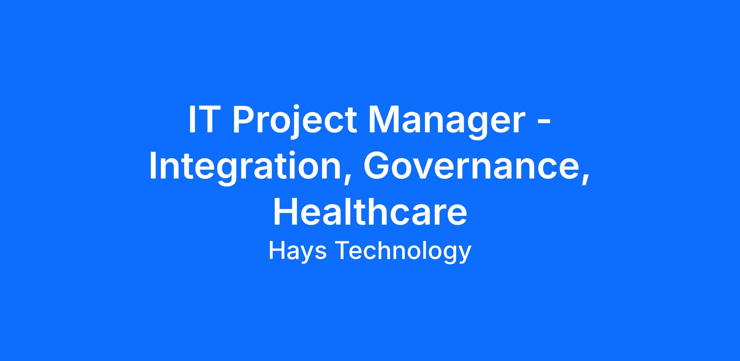 IT Project Manager - Integration, Governance, Healthcare