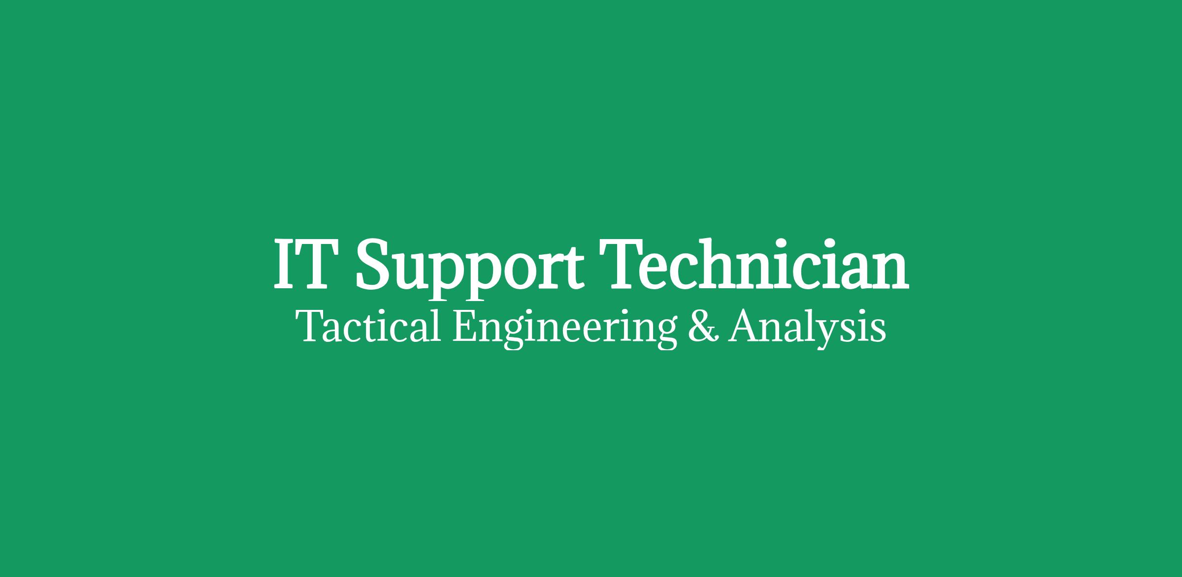 The IT Support Technician provides first-line technical support within a DoD aligned, CMMC compliant environment. This role is responsible for assisting end users with hardware, software, peripheral, and basic network issues while ensuring all actions align with organizational cybersecurity policies and CUI protection standards. The technician performs routine troubleshooting, account support, and incident logging, escalating unresolved or sensitive issues to higher-tier support. The position plays a critical role in maintaining system availability, user productivity, and compliance with DFARS and cybersecurity regulations.