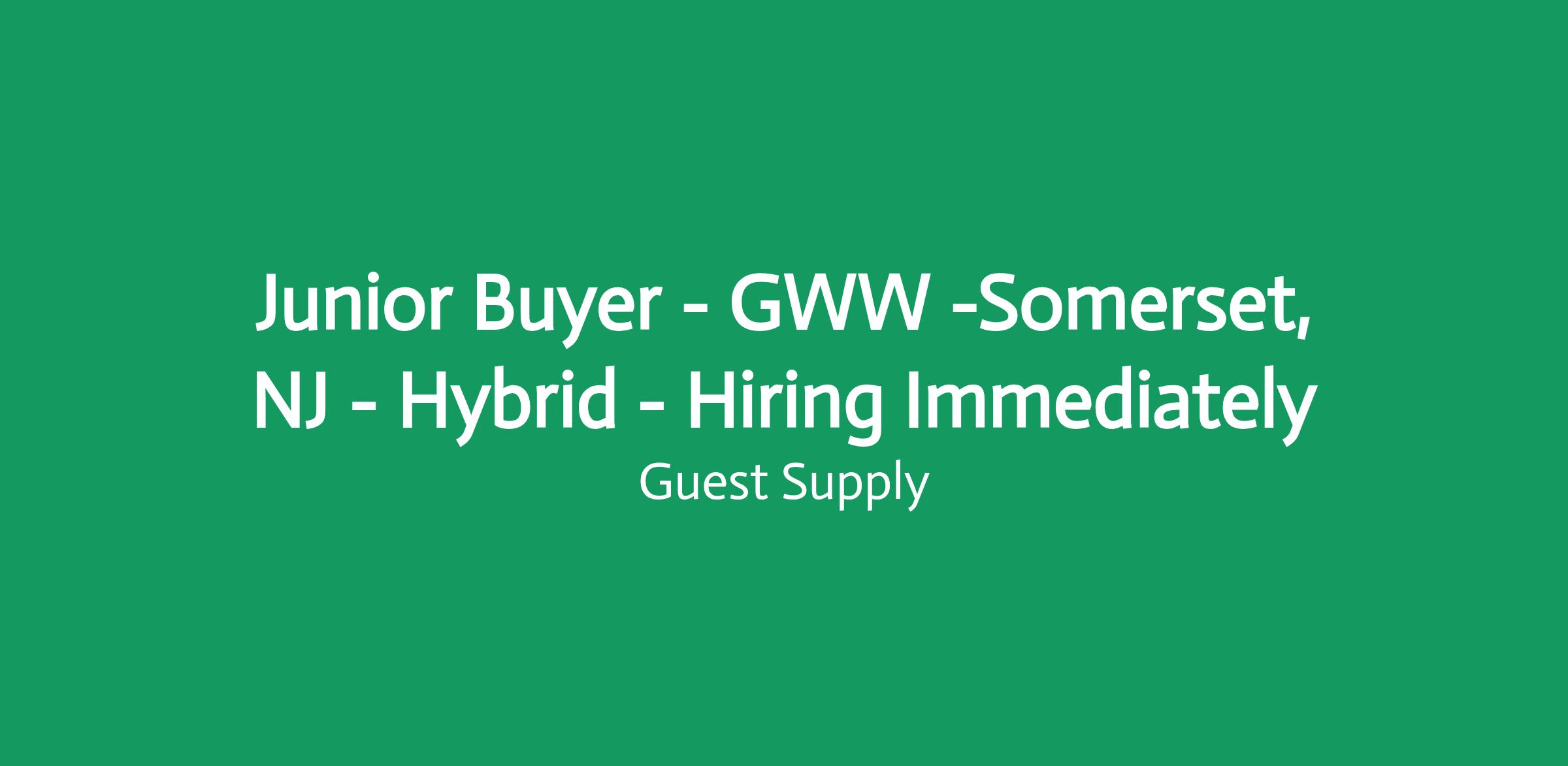 Junior Buyer - GWW -Somerset, NJ - Hybrid - Hiring Immediately
