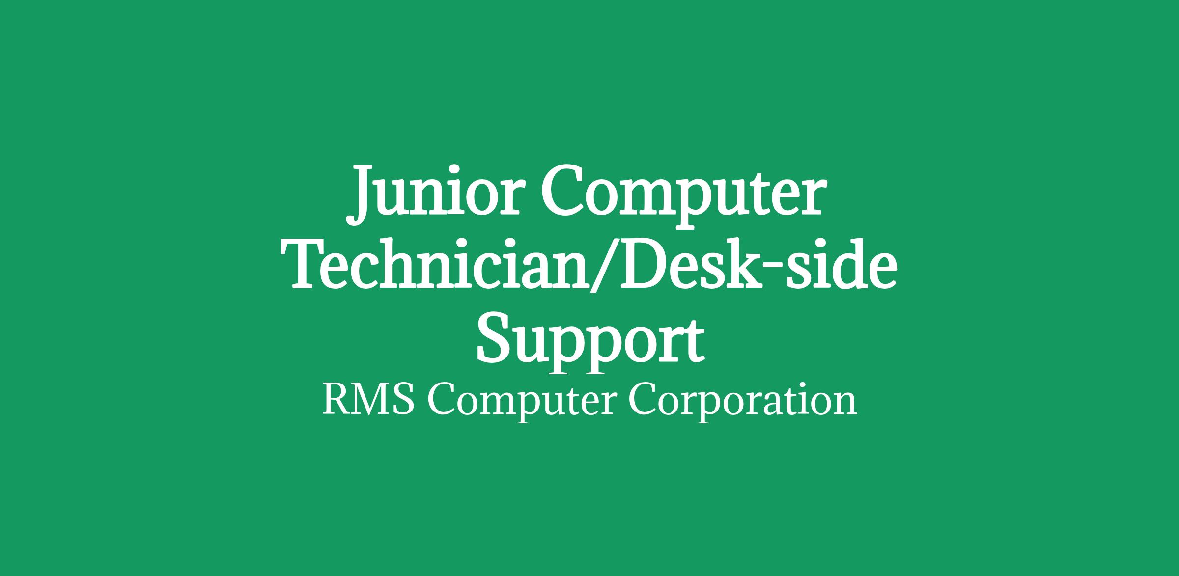 Junior Computer Technician/Desk-side Support Rate: $18/hr W2 My client is looking for a Deskside Support Technician. The Technician will work activities such as delivery, installation, moves and changes of end user's computer equipment and peripherals to include laptops, desktops, monitors and host components. Client provides a good supportive work environment with opportunities to learn on the job. Job Responsibilities could include: Image/ Reimage Laptop-Desktops Desk setup moves Computer refresh equipment swaps/migrations Application installations Simple Troubleshooting Equipment deliveries and setup Specific Job Requirements Customer service experience a huge plus Strong communication skills both verbal and written Attention to detail is critical Problem solving and the ability to work in both with team and independently