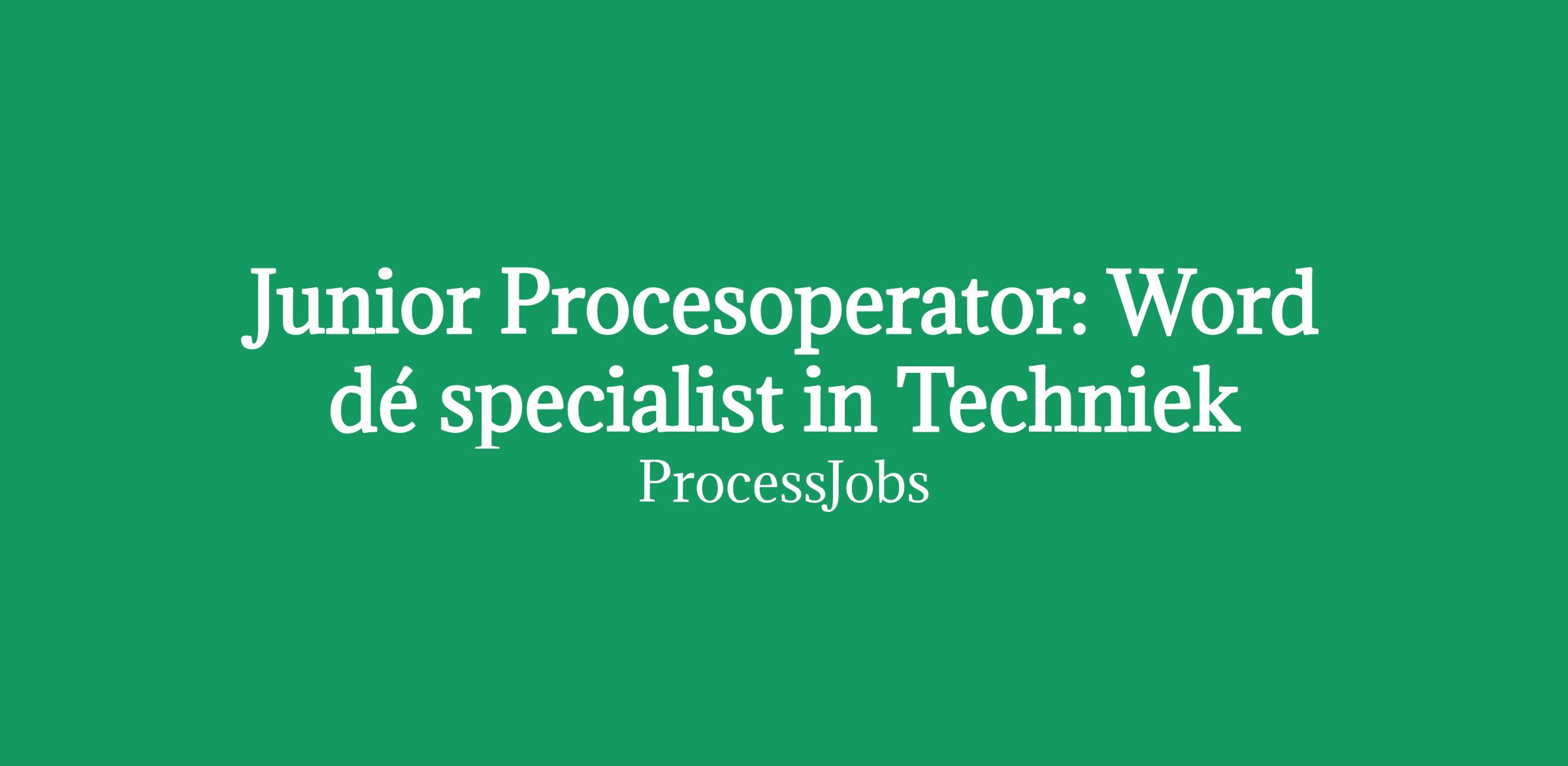 Junior Procesoperator: Word dé specialist in Techniek