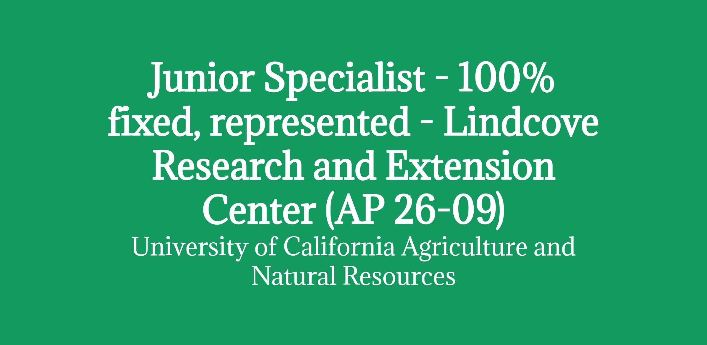 Junior Specialist - 100% fixed, represented - Lindcove Research and Extension Center (AP 26-09)