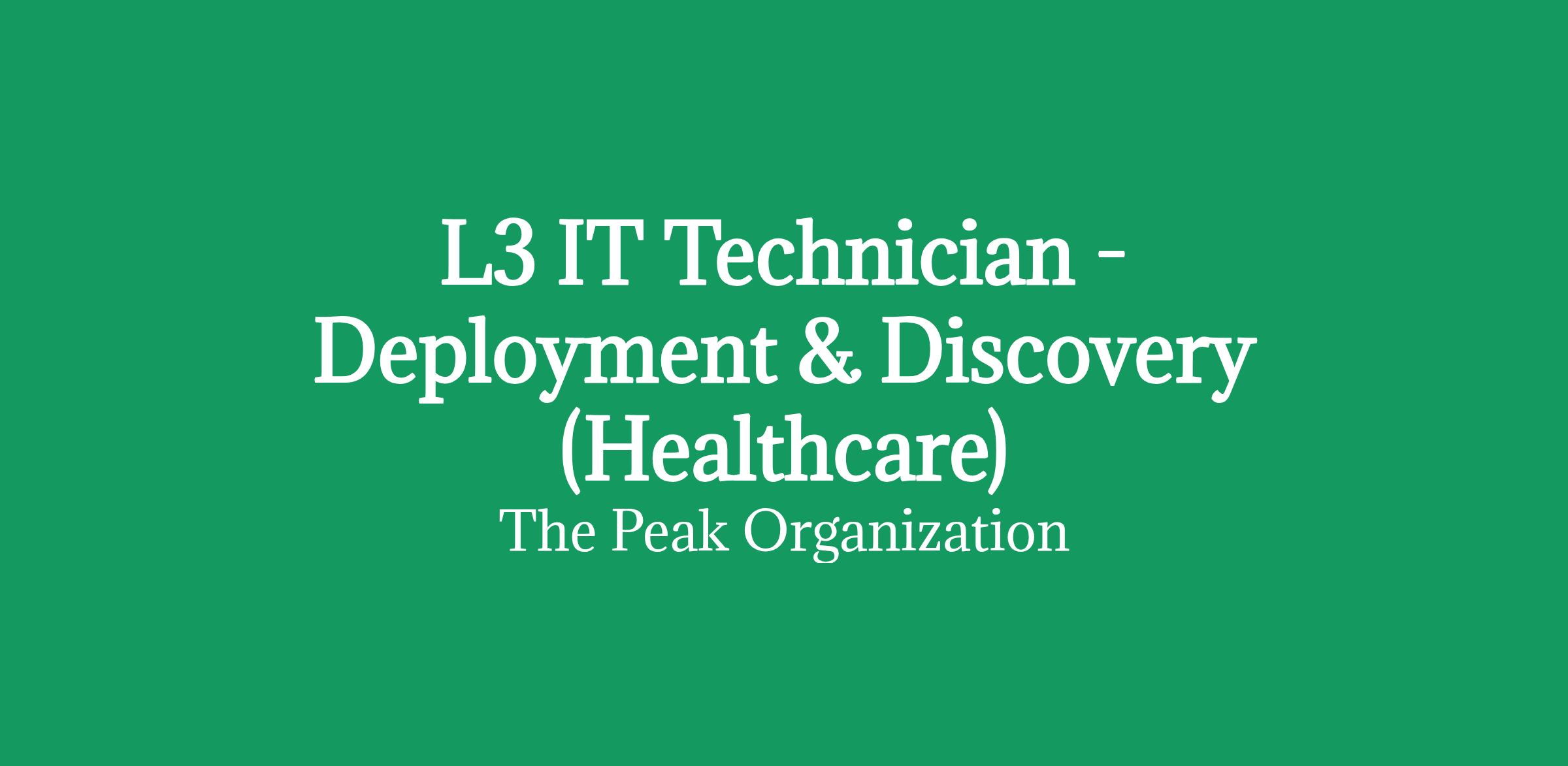 Title: Deployment Technician $23 - $24/hour Temporary Job description L3 IT Technician - Deployment & Discovery (Healthcare) One Lead Position Open Location: Roseburg, OR Employment Type: Temp Overview We are seeking a skilled Level 3 IT Technician to support enterprise deployment and infrastructure discovery initiatives in a healthcare environment. This role requires strong troubleshooting expertise, experience in regulated settings, and the ability to work independently in clinical and administrative areas. Key Responsibilities: Lead workstation, laptop, and peripheral deployments Support imaging, provisioning, and lifecycle refresh projects Perform technical discovery of endpoints and networked devices Document hardware, software, and infrastructure findings Provide Tier 3 escalation support for hardware, OS, and connectivity issues Support Active Directory, group policies, DNS/DHCP troubleshooting Ensure minimal disruption to patient-care operations Qualifications: 5+ years of IT support experience, including advanced (L3) troubleshooting Experience in healthcare or regulated environments (HIPAA familiarity preferred) Strong knowledge of Windows enterprise environments and endpoint deployment tools Solid understanding of Active Directory and basic networking Excellent communication skills with technical and non-technical users Preferred: Experience with Intune, SCCM, or similar endpoint management tools IT certifications (CompTIA, Microsoft, etc.)