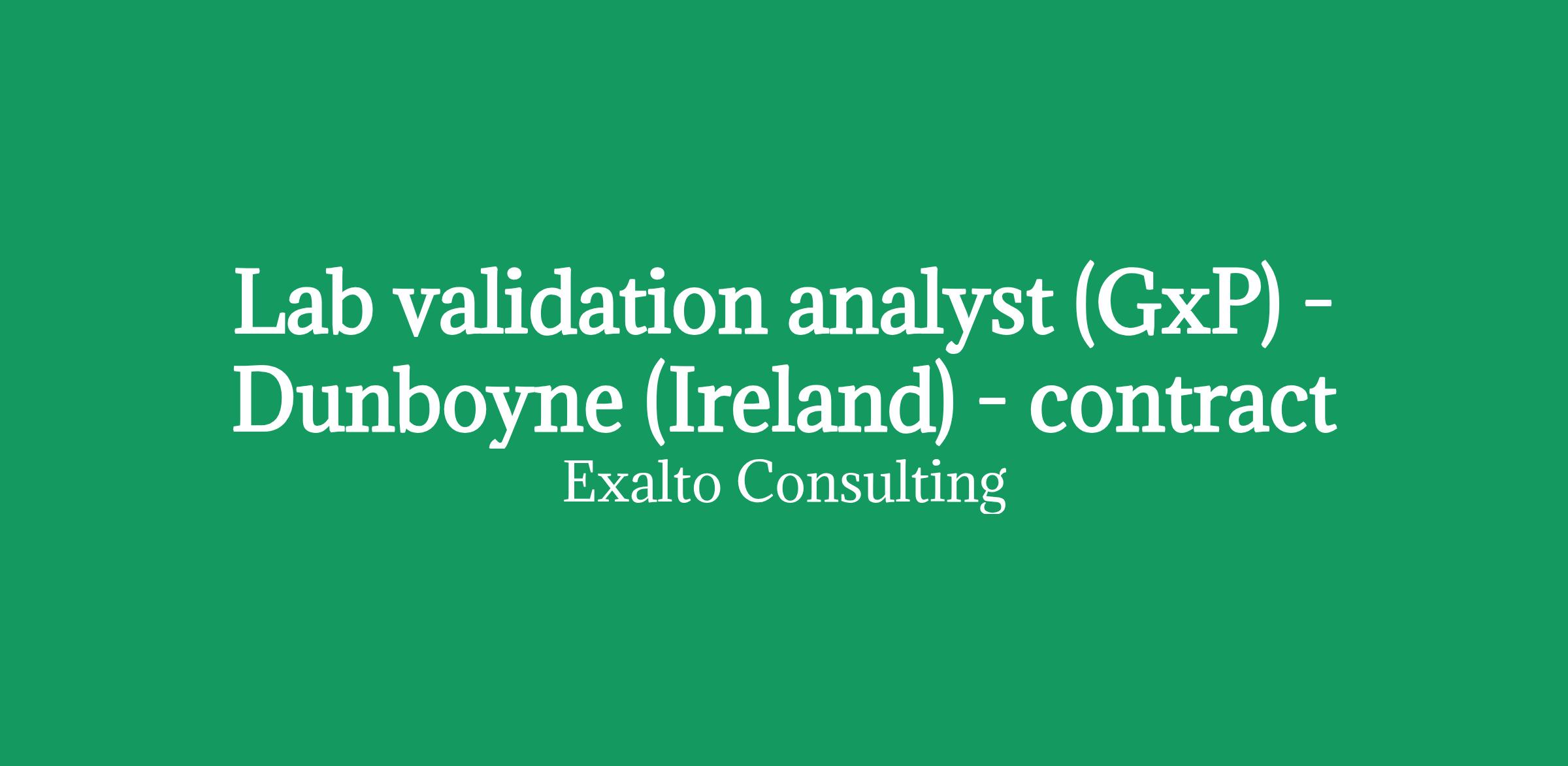 Lab validation analyst (GxP) - Dunboyne (Ireland) on site - contract - £450 per day