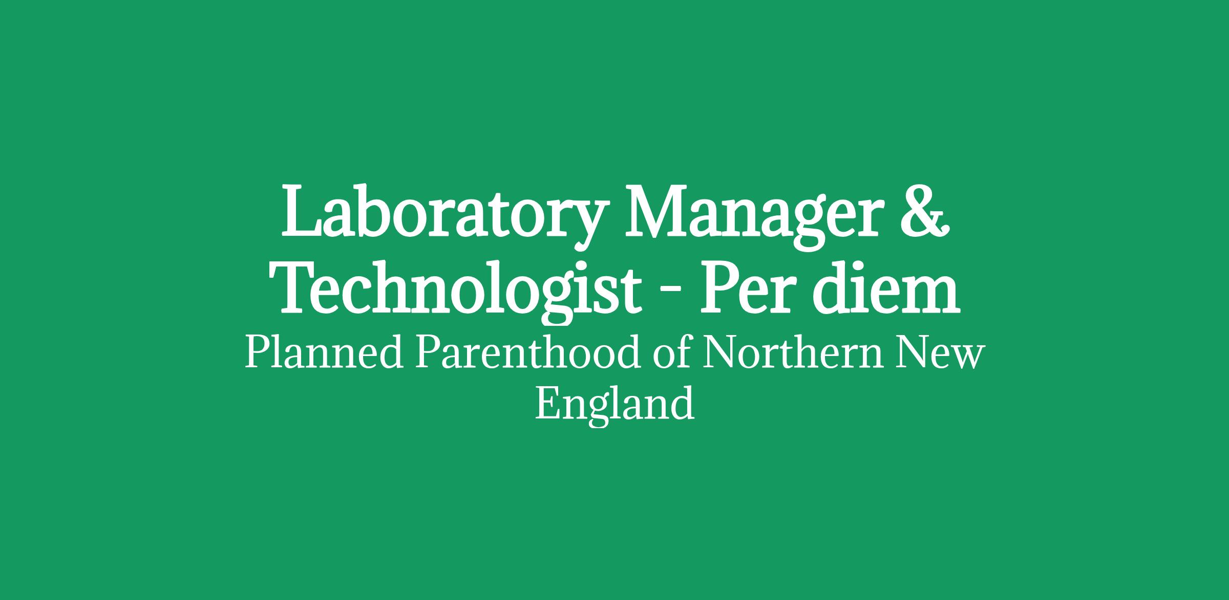 POSITION TITLE: Laboratory Manager & Technologist - Per diem