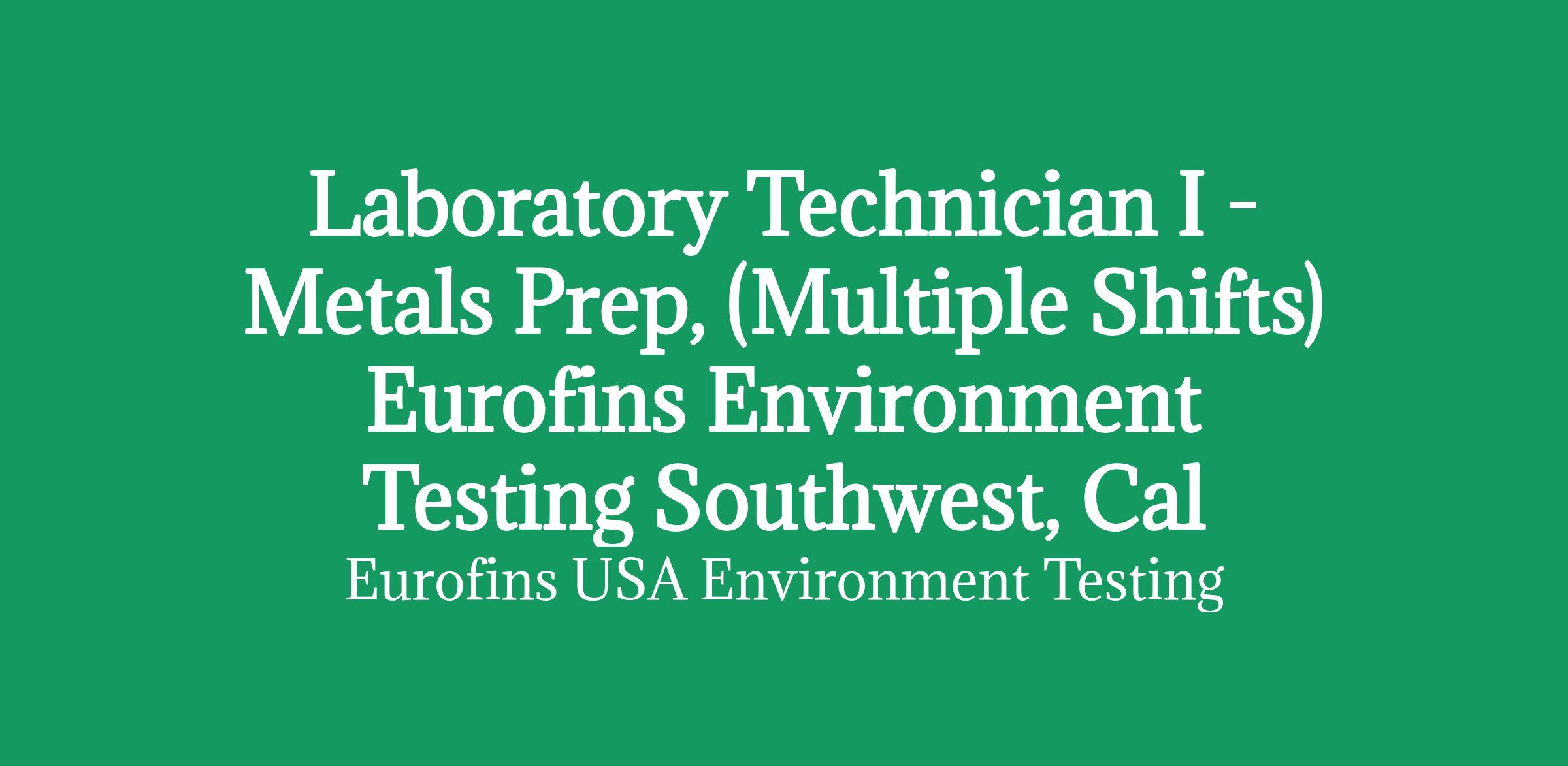 Eurofins Environmental Testing Southwest is searching for a Laboratory Technician I in Tustin, CA
