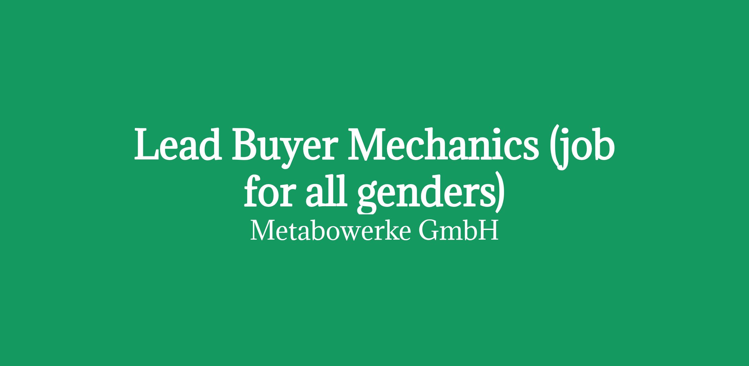 Lead Buyer Mechanics (job for all genders)