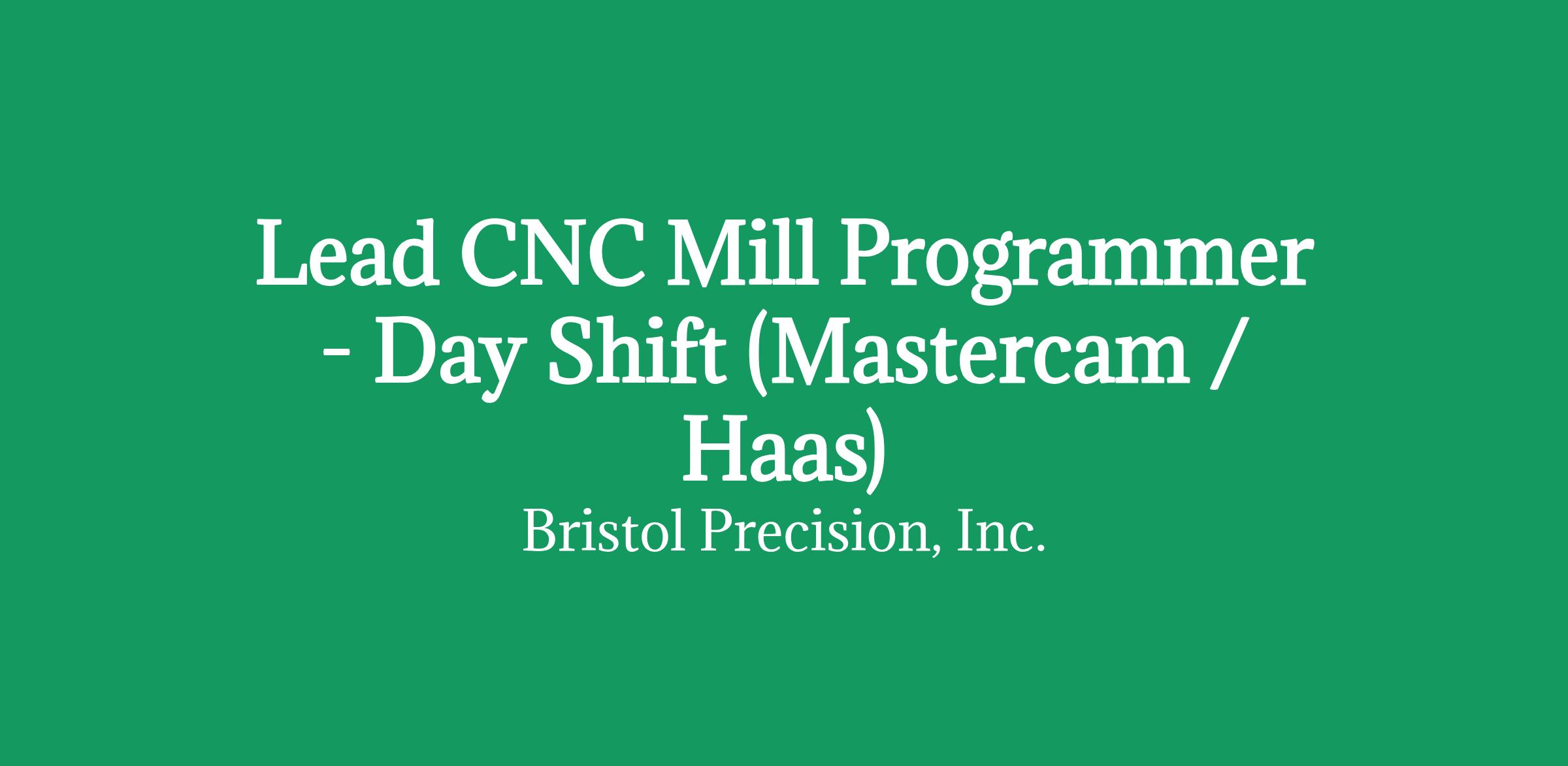 Bristol Precision continues to grow its prototype and small-batch aerospace, medical, and scientific programs. This Lead CNC Mill Programmer role exists to elevate programming standards, improve machining strategy, and drive consistency across complex 3-, 4-, and 5-axis work.