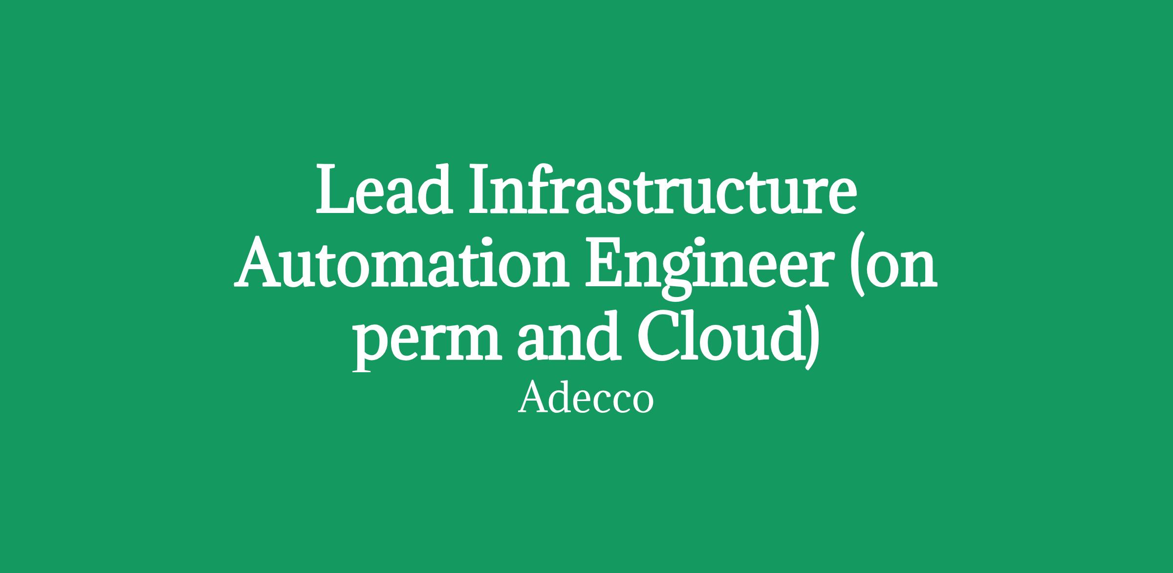 Lead Infrastructure Automation Engineer (on perm and Cloud)