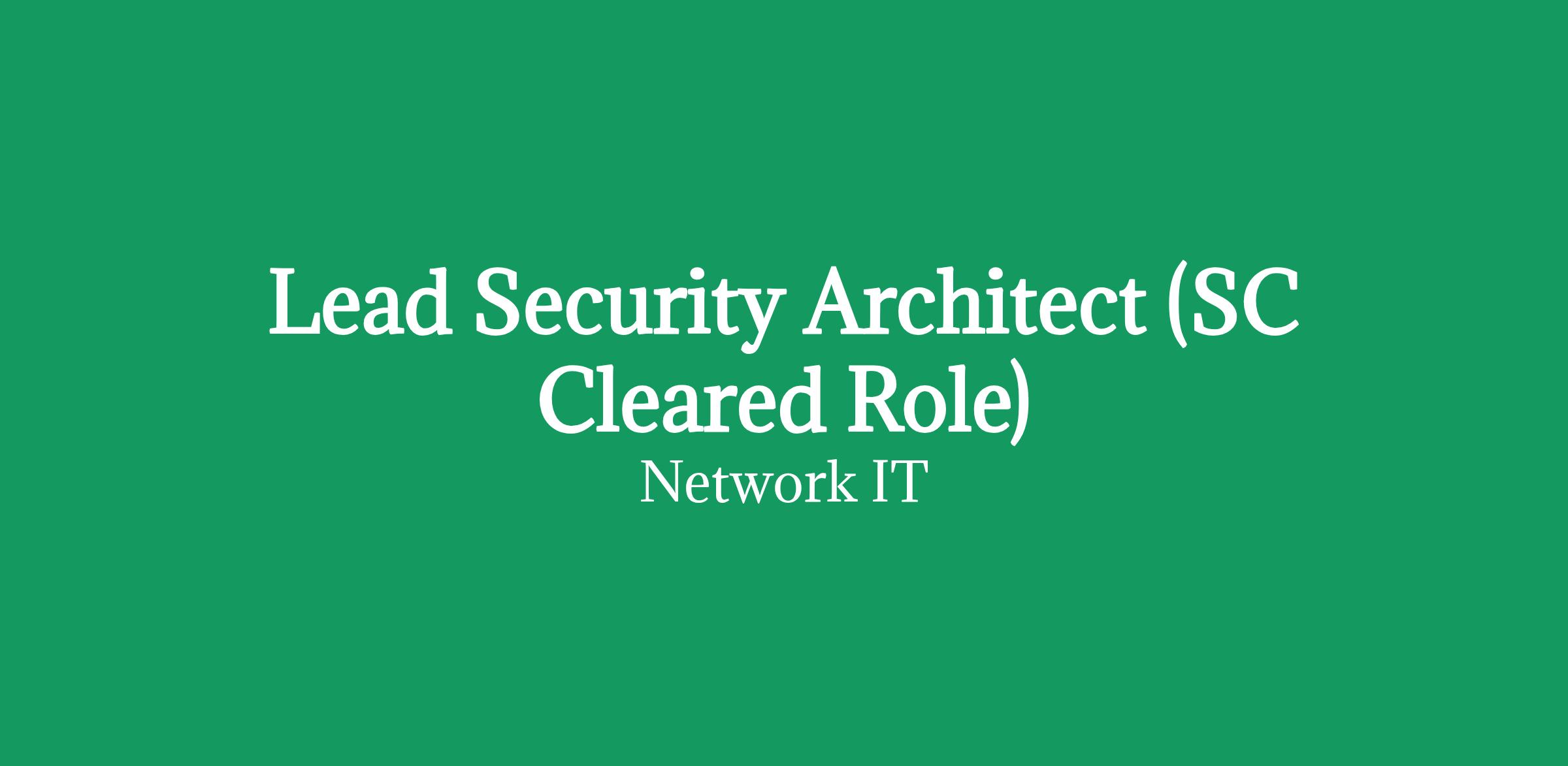 Network IT is currently recruiting for a Lead Security Architect, on behalf of our client in Milton Keynes.