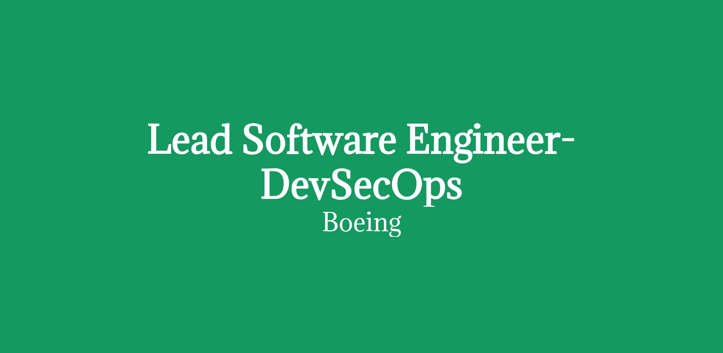 The Boeing Company is currently seeking a Lead Software Engineer - DevSecOps to support our Phantom Works Virtual Warfare Center team located in Berkeley, MO. This position will focus on supporting the Boeing Defense, Space & Security (BDS) business organization.