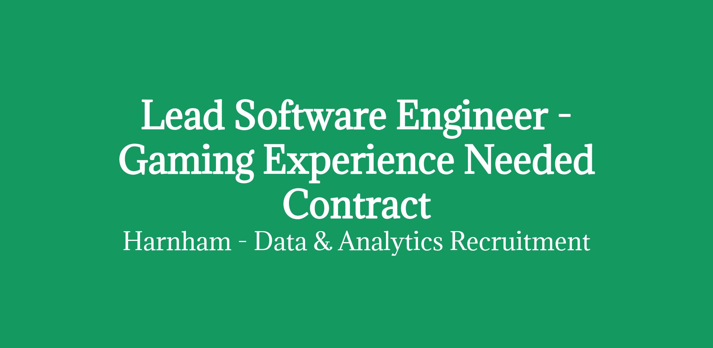 Lead Software Engineer - Gaming Experience Needed Contract