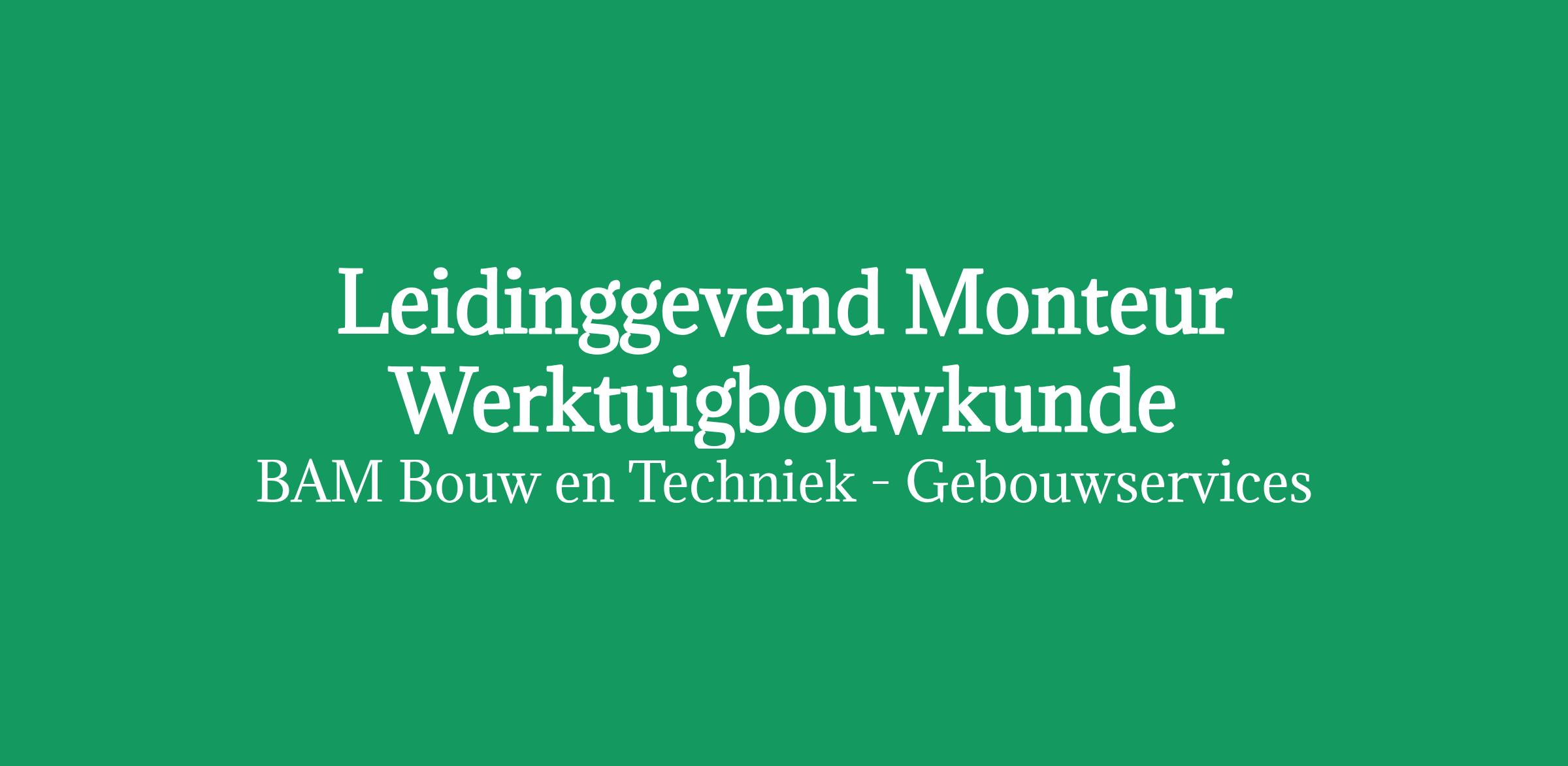 BAM Bouw & Techniek bestaat uit de onderdelen Gebouwservices, Projecten en Commercie. Bij Gebouwservices beheren en onderhouden we hoogwaardig vastgoed met expertise in bouwkundig, elektrotechnisch en werktuigbouwkundig / installatietechnisch onderhoud. Je standplaats is Eindhoven. Je werkt nauw samen in een integraal team met de werkvoorbereider, projectleider, tekenaar, uitvoerder en je directe collega's op het project. Het is een gezellig team waarbij er veel wordt gelachen en hard wordt gewerkt. Er is ruimte om mee te denken over oplossingen en verbeteringen zodat je de week succesvol met elkaar kan afsluiten.