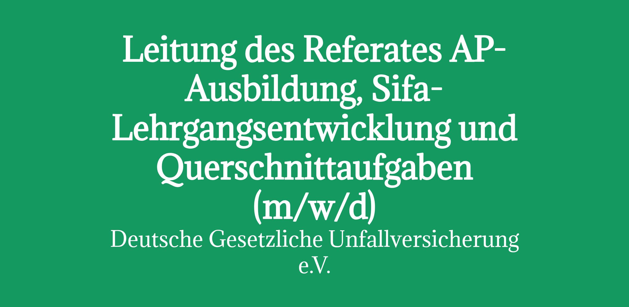 Leitung des Referates AP-Ausbildung, Sifa-Lehrgangsentwicklung und Querschnittaufgaben Wir sind die Deutsche Gesetzliche Unfallversicherung e.V. (DGUV),