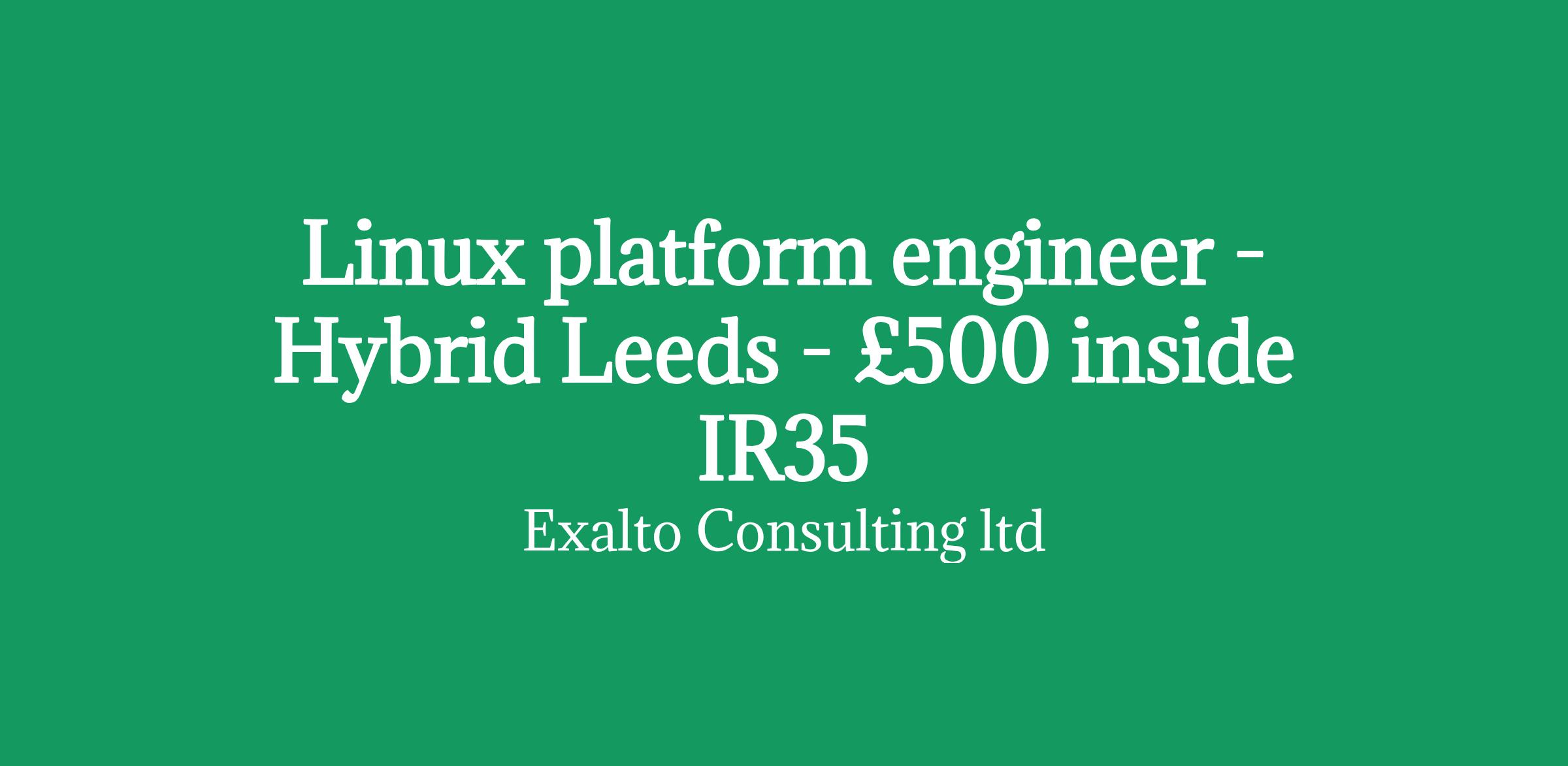 Exalto consulting are currently recruiting for a contract linux platform engineer this is hybrid working in Leeds paying £500 per day inside IR35.