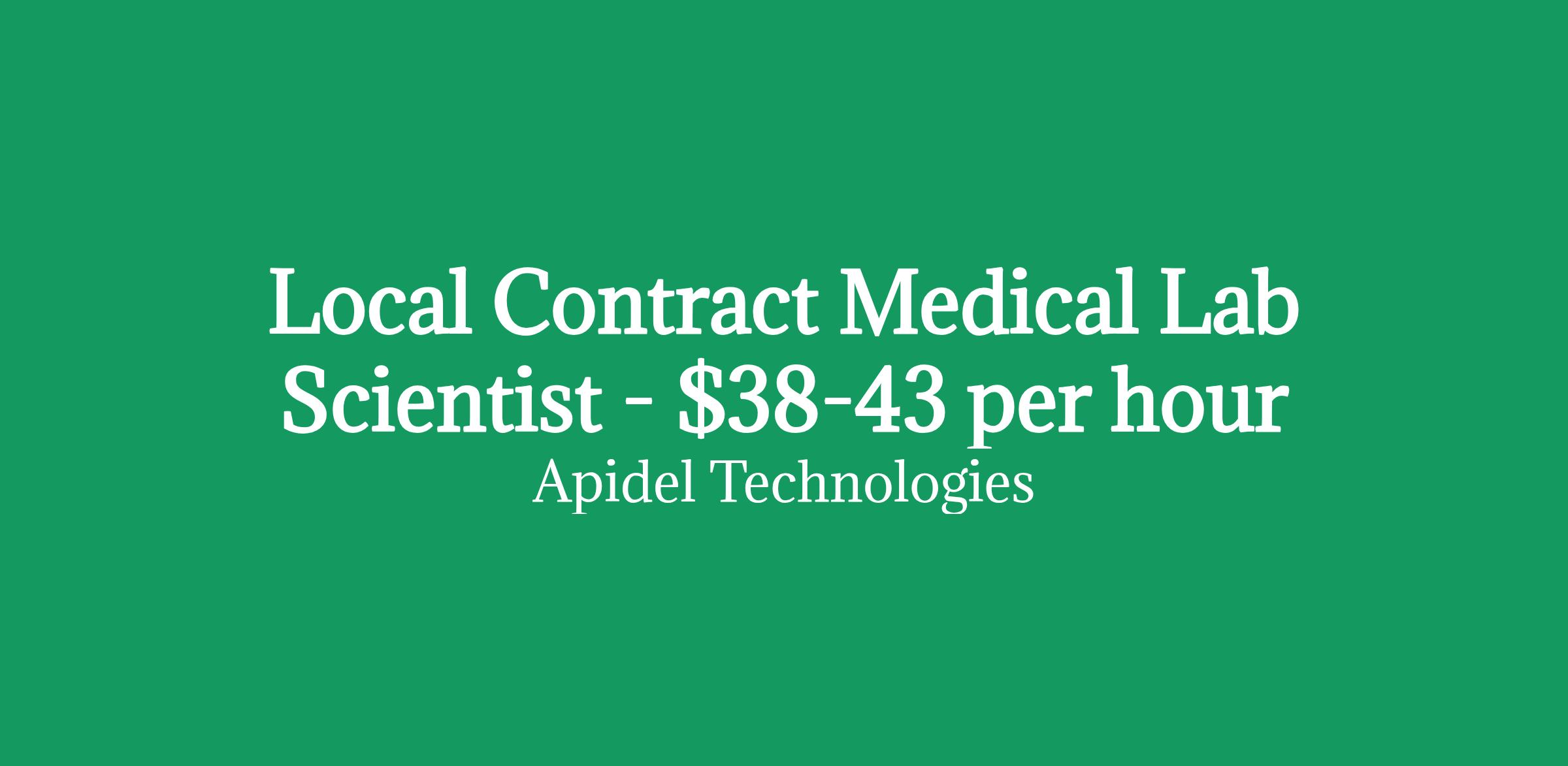 Apidel Technologies is seeking a local contract Medical Lab Scientist for a local contract job in Grosse Pointe, Michigan.