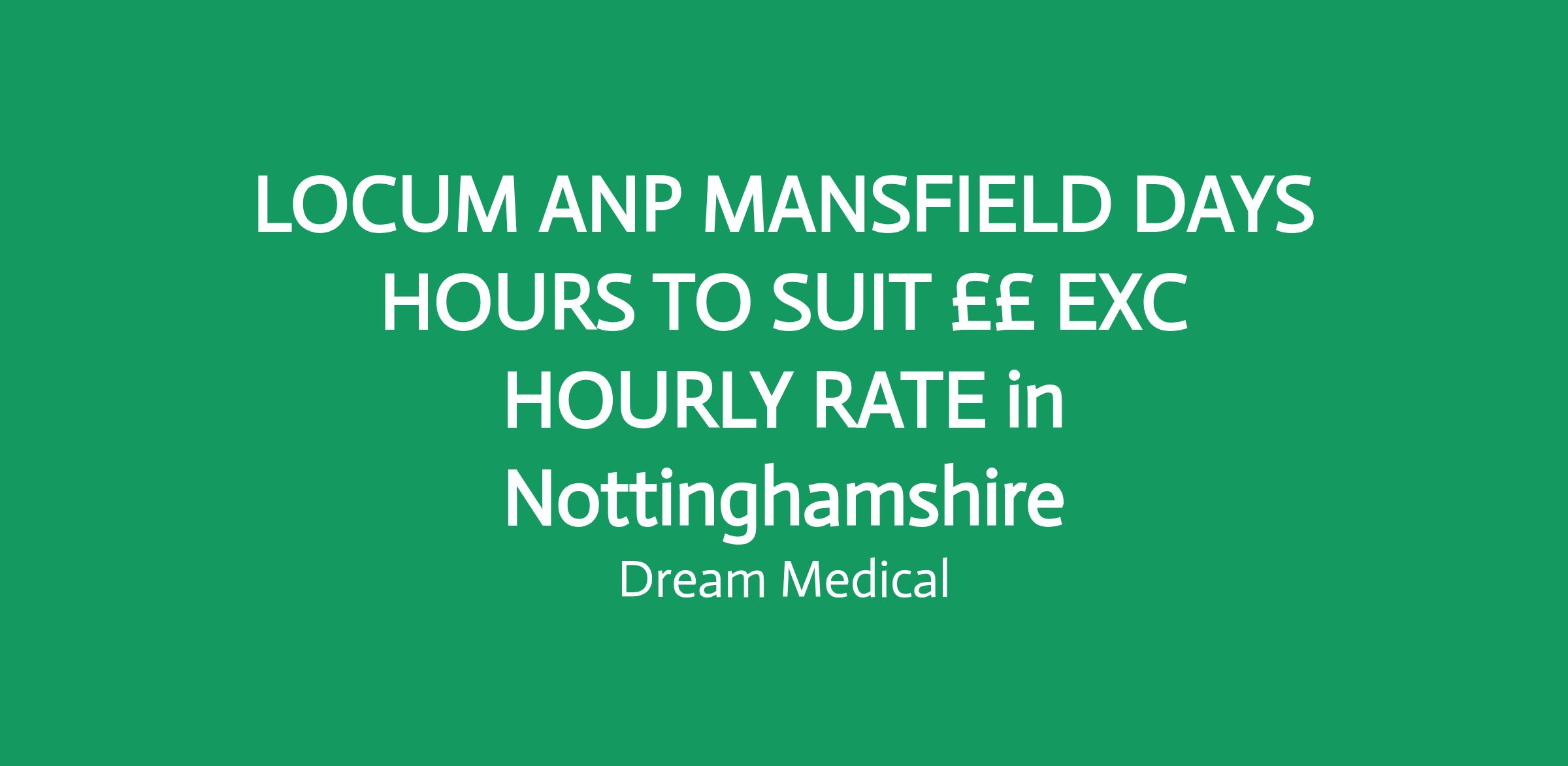 Current opportunityWe are currently recruiting Locum Advanced Nurse Practitioners to work with a new client in Mansfield. There are a wide range of shifts available ranging from seeing and treat, Triage, Surgery and visiting and shifts tend to be from full days to 8 - hour evening shifts and nights with lucrative pay available for weekdays and weekend work.